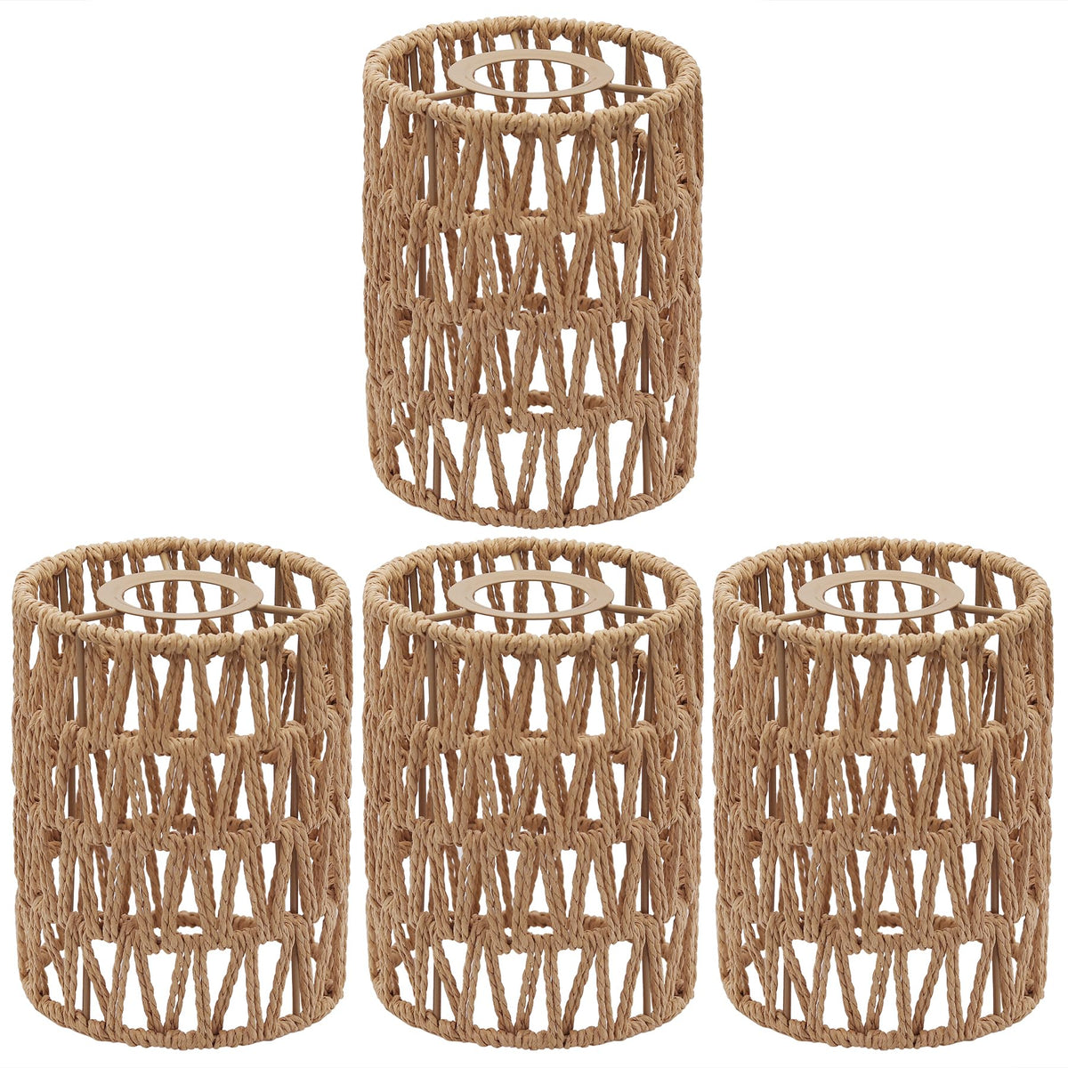 Giutna Rattan Lamp Shade, 4-Pack Retro Small Wicker Lamp Shade Replacement, Boho Woven Pendant Light Lampshade Cover For Chandel