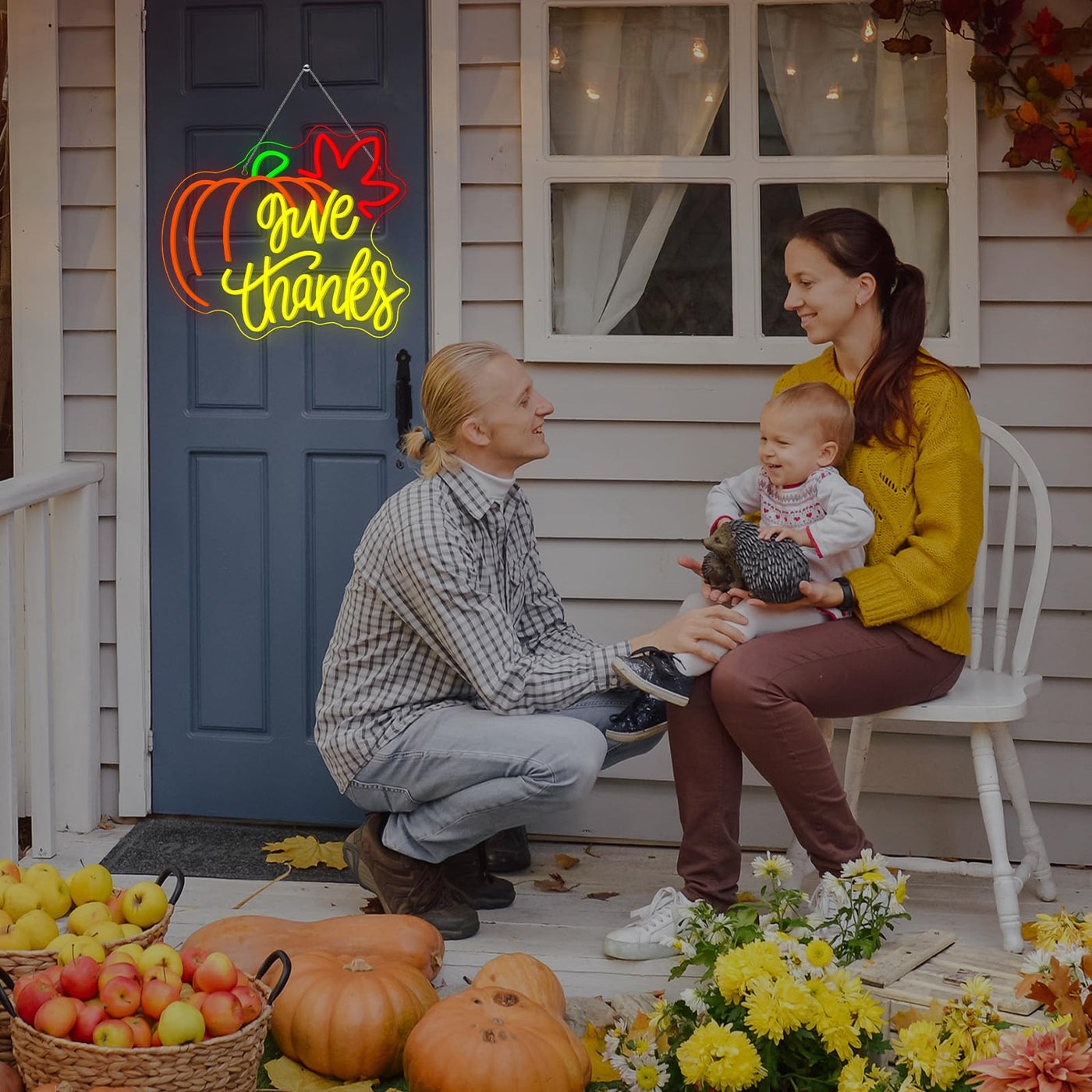 Give Thanks Neon Sign With Light Up Pumpkin Led Neon Light Fall Themed Pumpkins Decor For Bedroom Fall Wall Decor Gift For Teens And mature-themeds