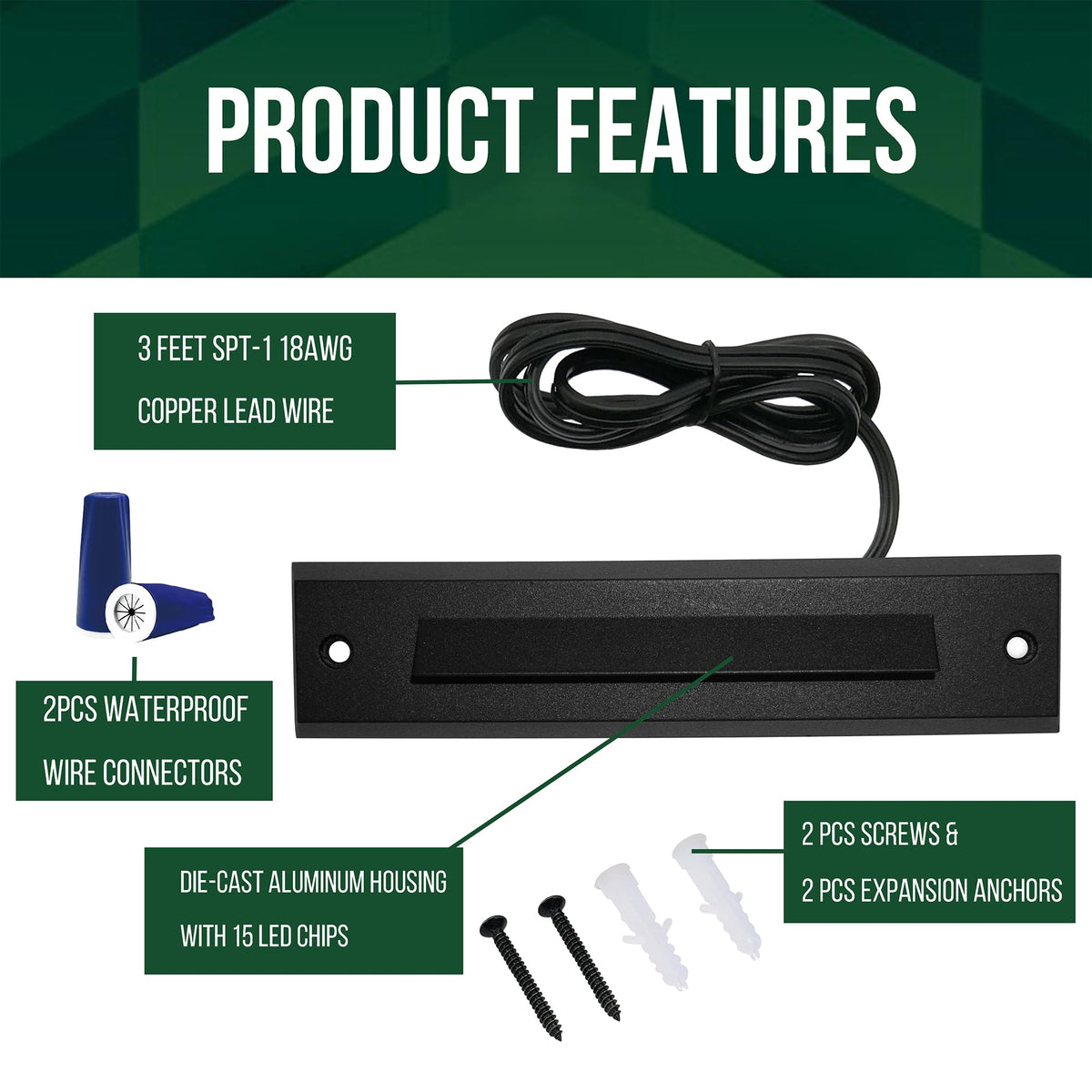 Product Introductiongkoled Low Voltage Led Deck Lights Produce A Warm And Soft Light That Is Free Of Glare. This Strip Deck Light Is Suitable For Wet Location. Additionally, A Die-Cast Aluminum Housing With Black Powder Coated Finish Provide Great Durability And Make It Perfect For Outdoor Uses. This Product Is Covered For 2 Years From The Date Of Original Purchase.Accessory2 Screws2 Waterproof Wire Nuts2 Expansion Anchors36'' Pre-Wired Spt-2 18Awg Copper Leadswide Applicationwallsdeckssteps Notesdo Not Attempt To Connect The Lights To 120V Or Higher Line Voltage, And Doing So Will Damage The Lights.A Low Voltage Transformer (Not Included In The Product) With 9-15V Ac/Dc Output Is Required To Power These Lights.
