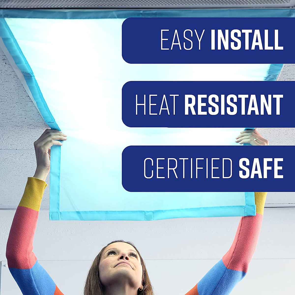 Q: Are the materials used in these light covers fire safe?A: Yes, the GlareShade light covers are made from 100% polyester that is flame-retardant and meets fire safety standards. Each pack includes a certification for compliance, ensuring safety in various environments.