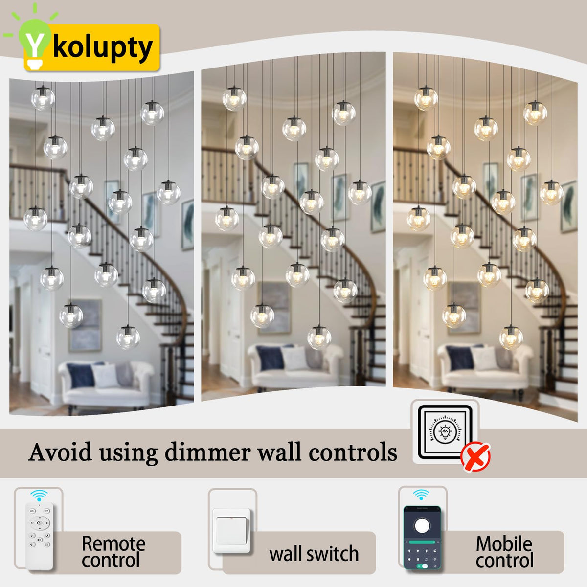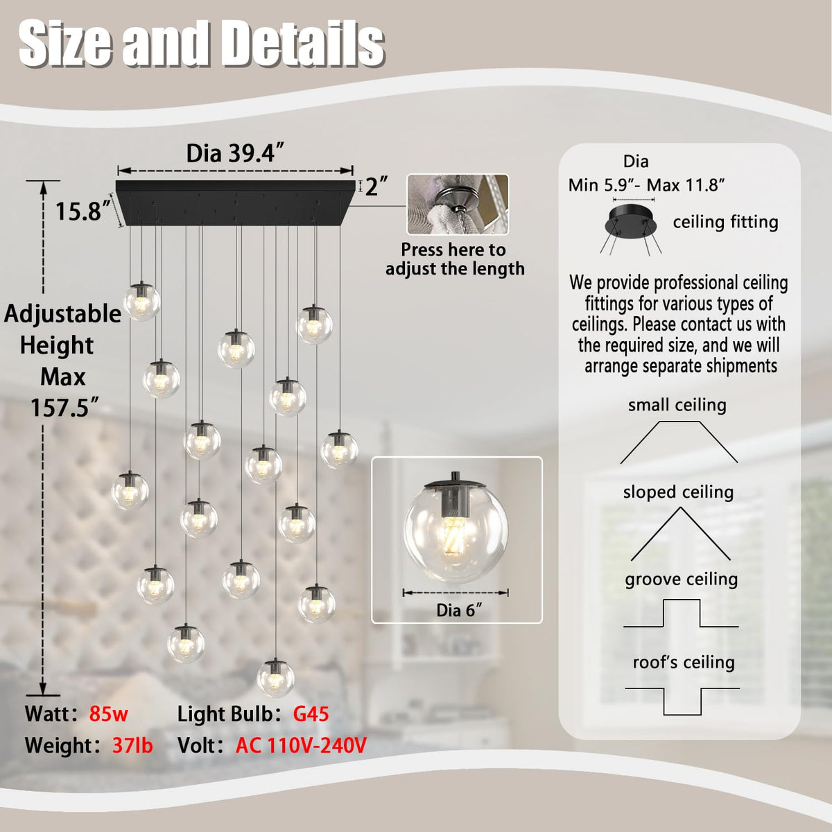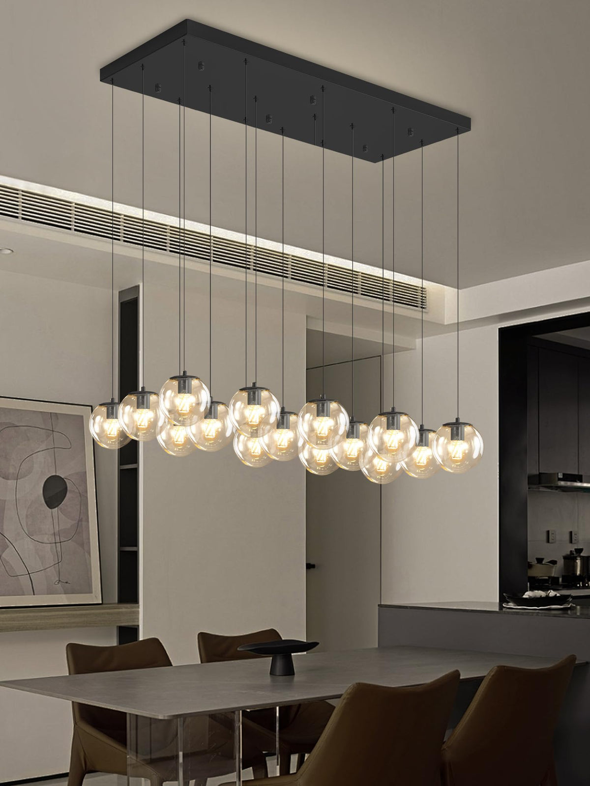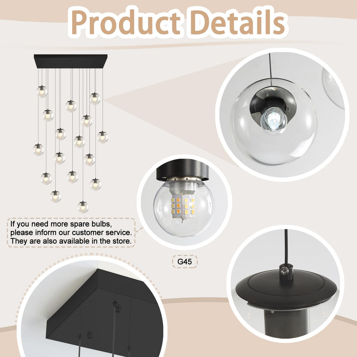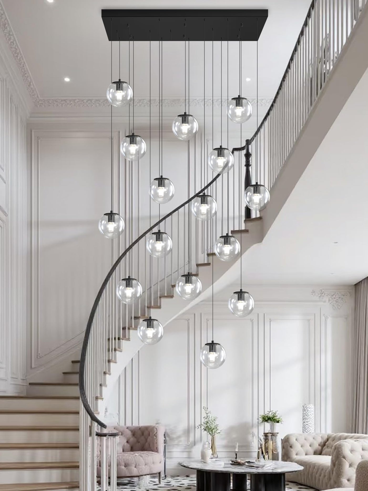 Glass Chandelier Led Modern Black Pendant Light Globe Glass Ceiling Light 16-Lights Glass Ball Chandeliers For Staircase Living
