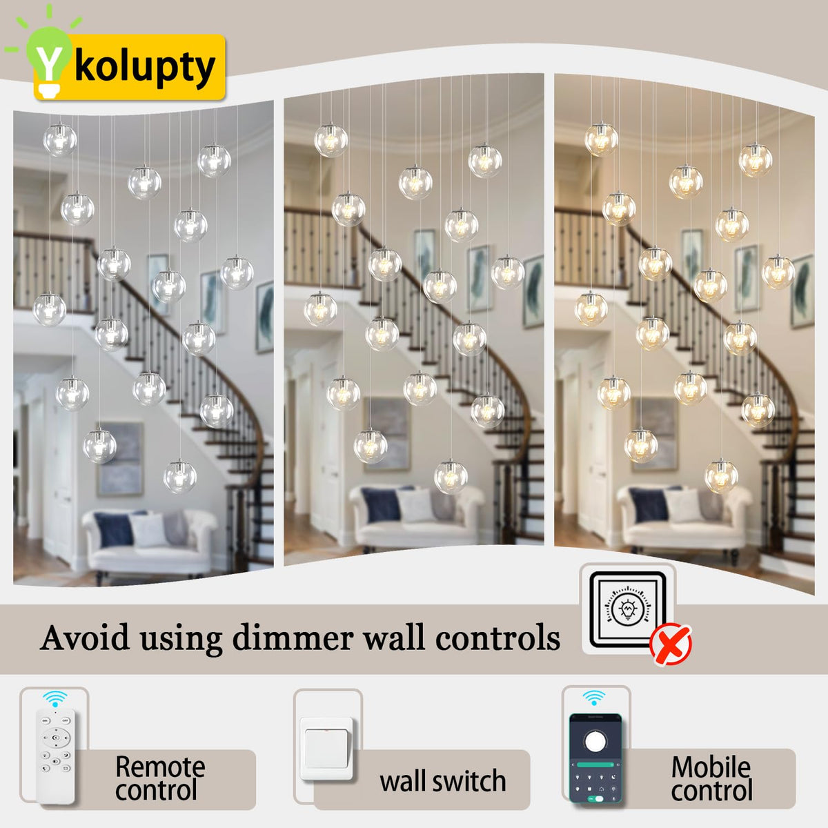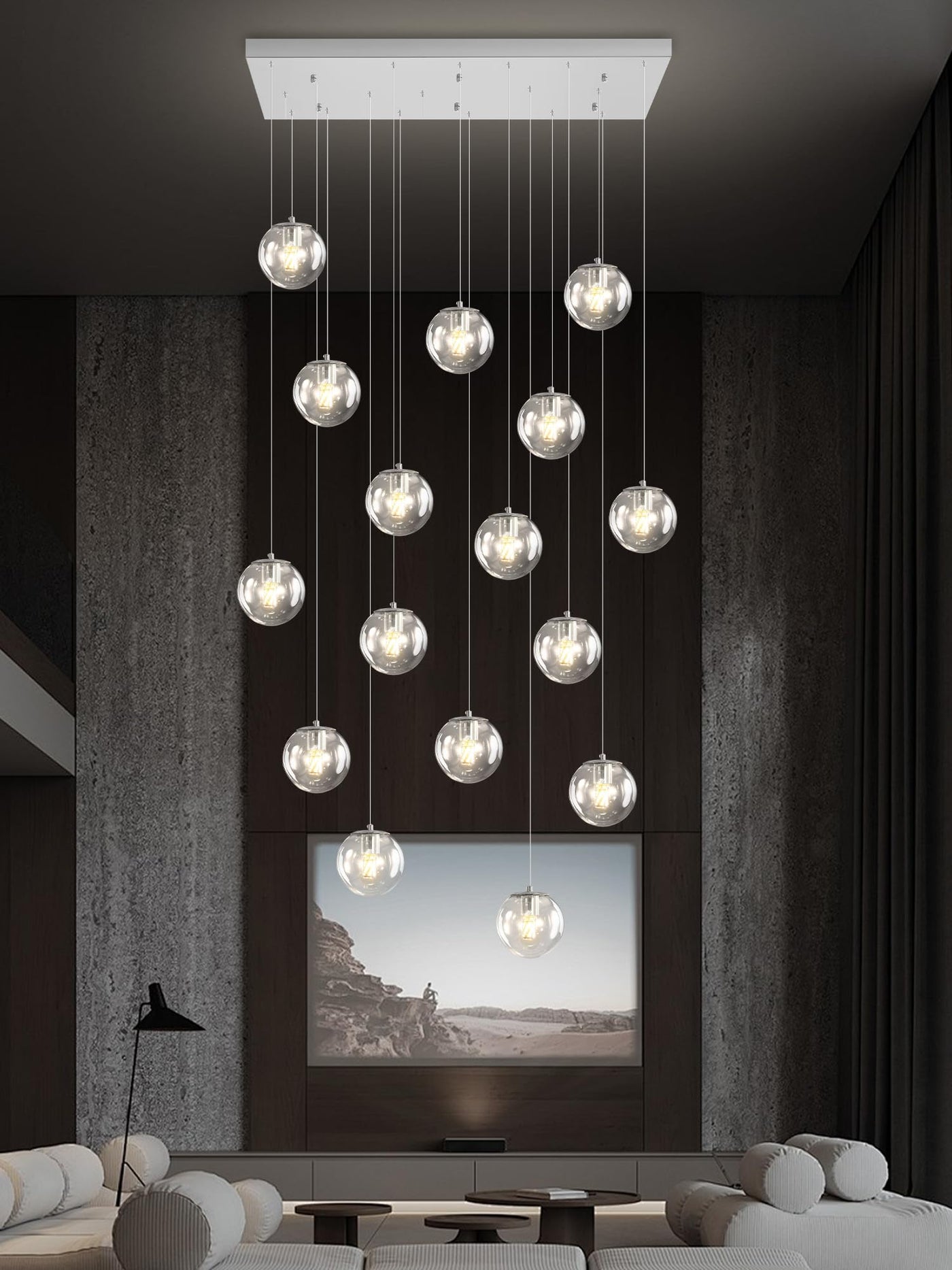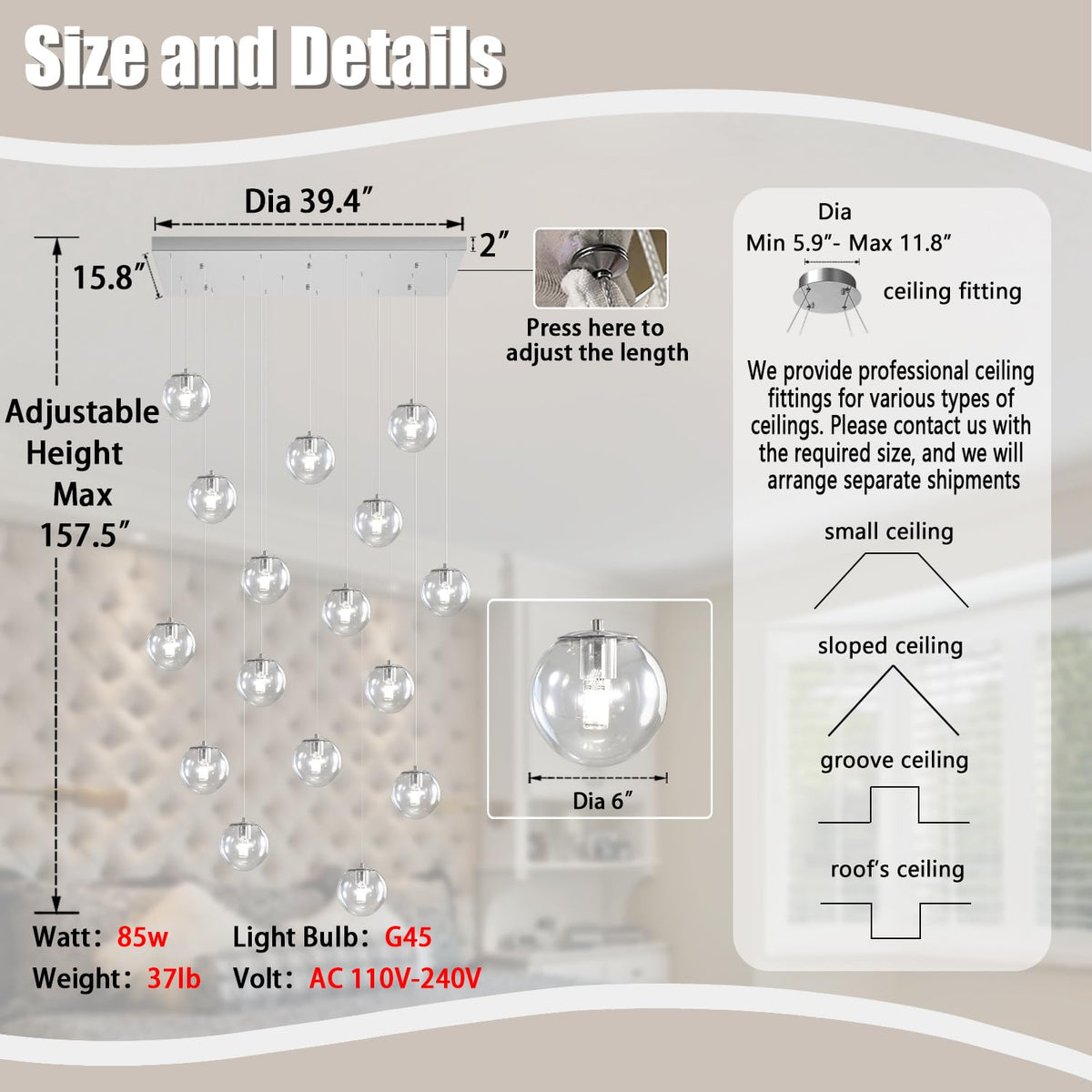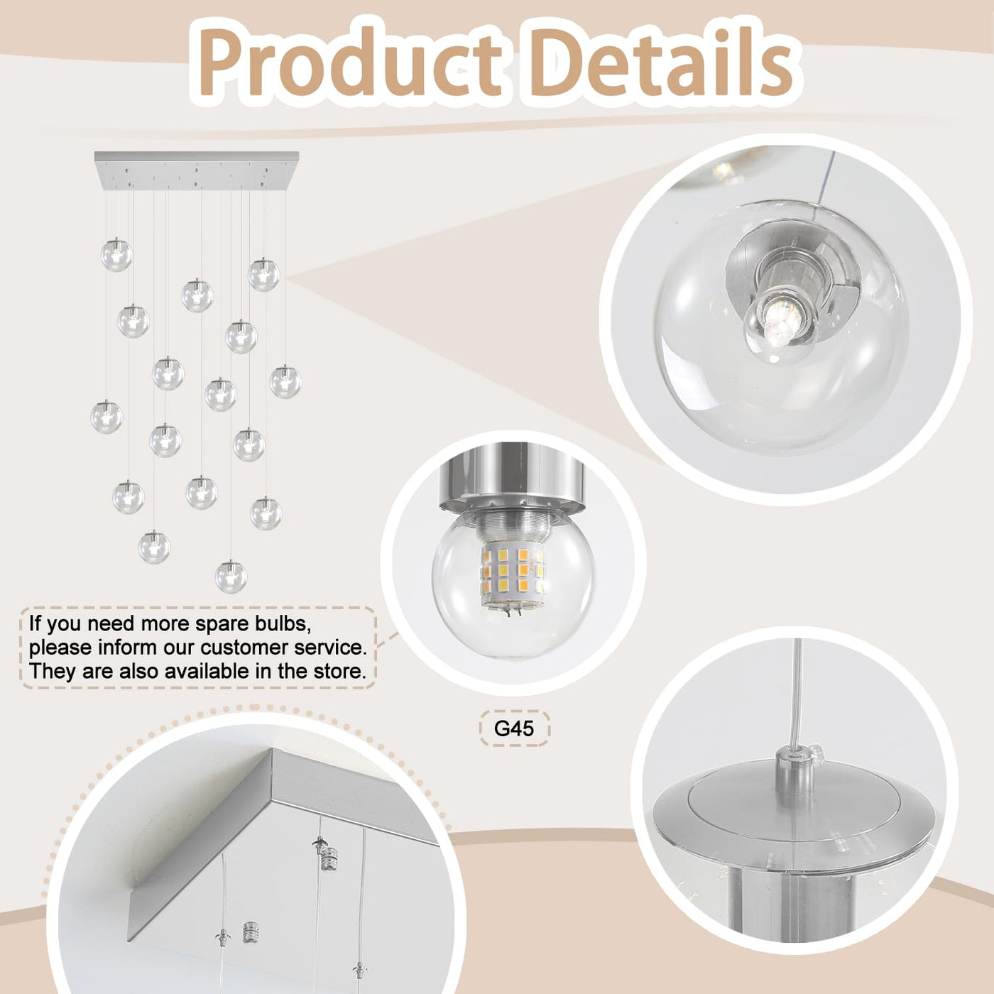 Glass Chandelier Led Modern Silver Pendant Light Globe Glass Ceiling Light 16-Lights Glass Ball Chandeliers For Staircase Living