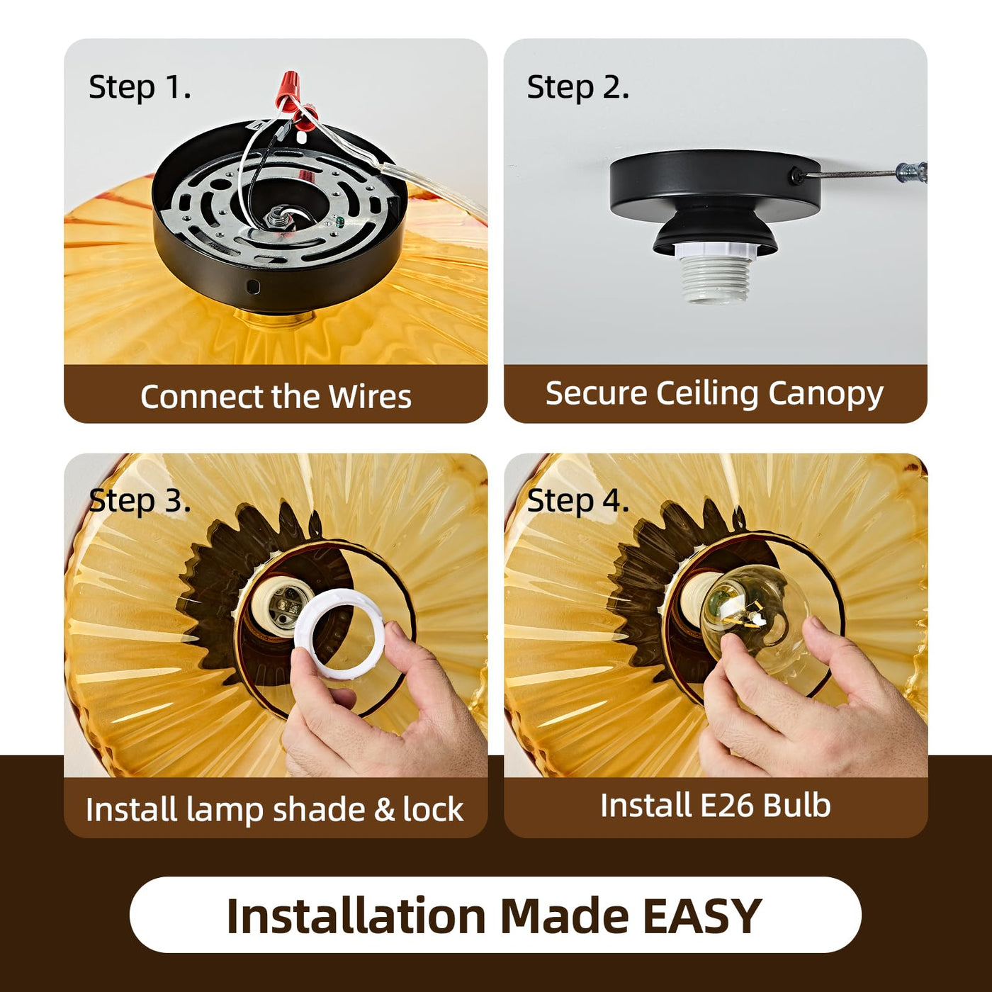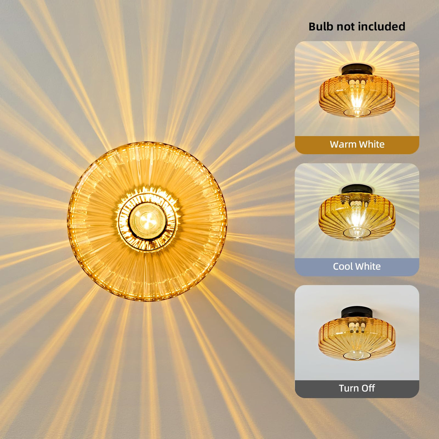 ?Vintage Craftsmanship Cozy Atmosphere? Classic Retro Semi-Buried Ceiling Lamp With Artisanal Amber Glass Shade And Matte Black Metal Base Outstanding Texture. The Soft Light Reflects The Charming Shadow Through The Glass Easily Creating A Warm And Cozy Home Atmosphere. ?Universal E26 Interface Flexible Dimming? Standard E26 Lamp Holder Supports Up To 60W Compatible With Incandescent Led Cfl And Other Bulb Types. With Dimmable Bulbs And Compatible Dimmer Switch (To Be Purchased Separately) You Can Realize The Brightness Adjustment. ?Convenient Safe And Reliable? Hard-Wired Design With Detailed Installation Instructions And A Full Set Of Installation Accessories Novice Can Also Easily Complete The Installation. Adapt To The U.S. Standard Junction Box. ?Matching Style Light Up The Space?Unique Mid-Century Modern Trend Design Can Embellish The Traditional Home Can Also Be Integrated Into The Modern Space. Ideal For Lighting Up Bedrooms Hallways Entryways Foyers Adding A Touch Of Elegance And Style To The Space. ?Quality Guarantee Worry-Free After-Sales? We Provide 24 Months Warranty Service. If You Encounter Any Quality Problems Or Technical Questions During Use Please Feel Free To Contact Us And We Will Be Happy To Help You Solve It.