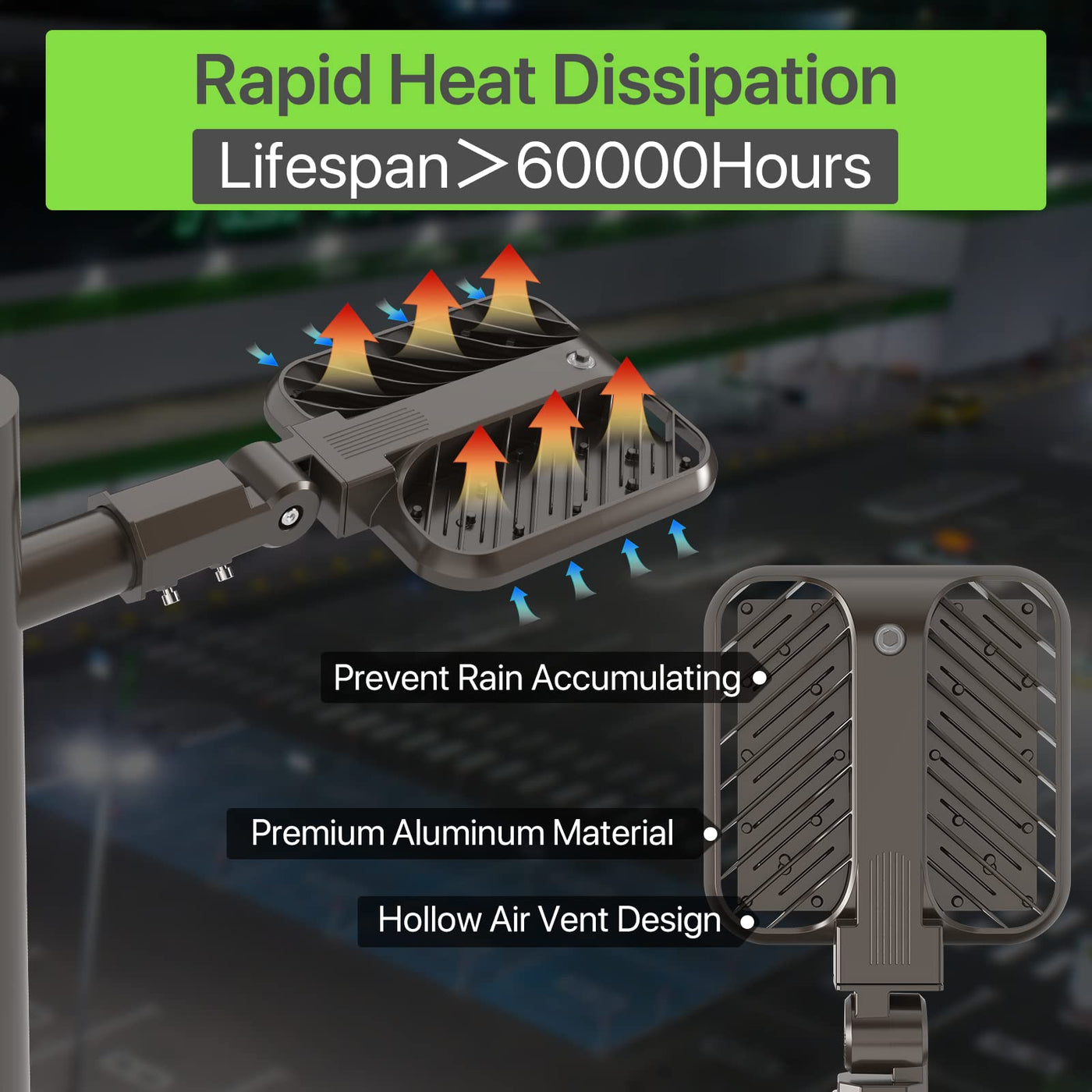 Glitgate LED Parking Lot Light is made of high quality aluminum materials. Solid and secure. With dusk to dawn photocell design, you can control the street light automatically. Quick installation design make it easier to connect the parts together. Full screen design has more led chip, which is brighter and has higher light efficiency and larger light coverage.