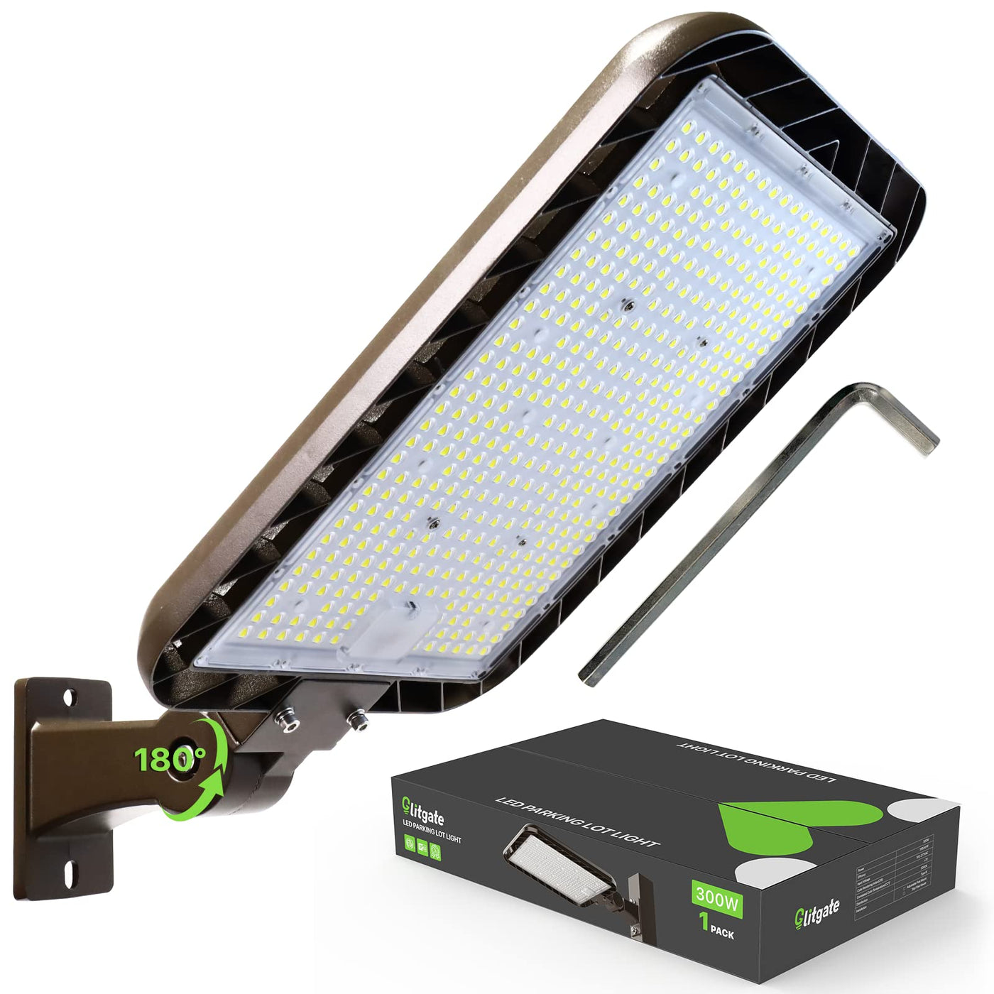 Glitgate 300W Led Parking Lot Light 45000Lm 5000K Adjustable Arm Mount Street Light With Dusk To Dawn Photocell, 100-277V Ip65 Outdoor Waterproof Commercial Area Lighting