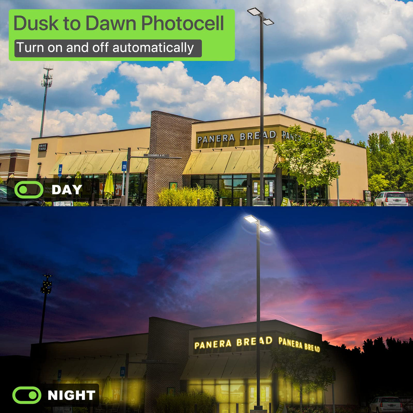 Glitgate LED Parking Lot Light is made of high quality aluminum materials. Solid and secure. With dusk to dawn photocell design, you can control the street light automatically. Quick installation design make it easier to connect the parts together. Full screen design has more led chip, which is brighter and has higher light efficiency and larger light coverage.