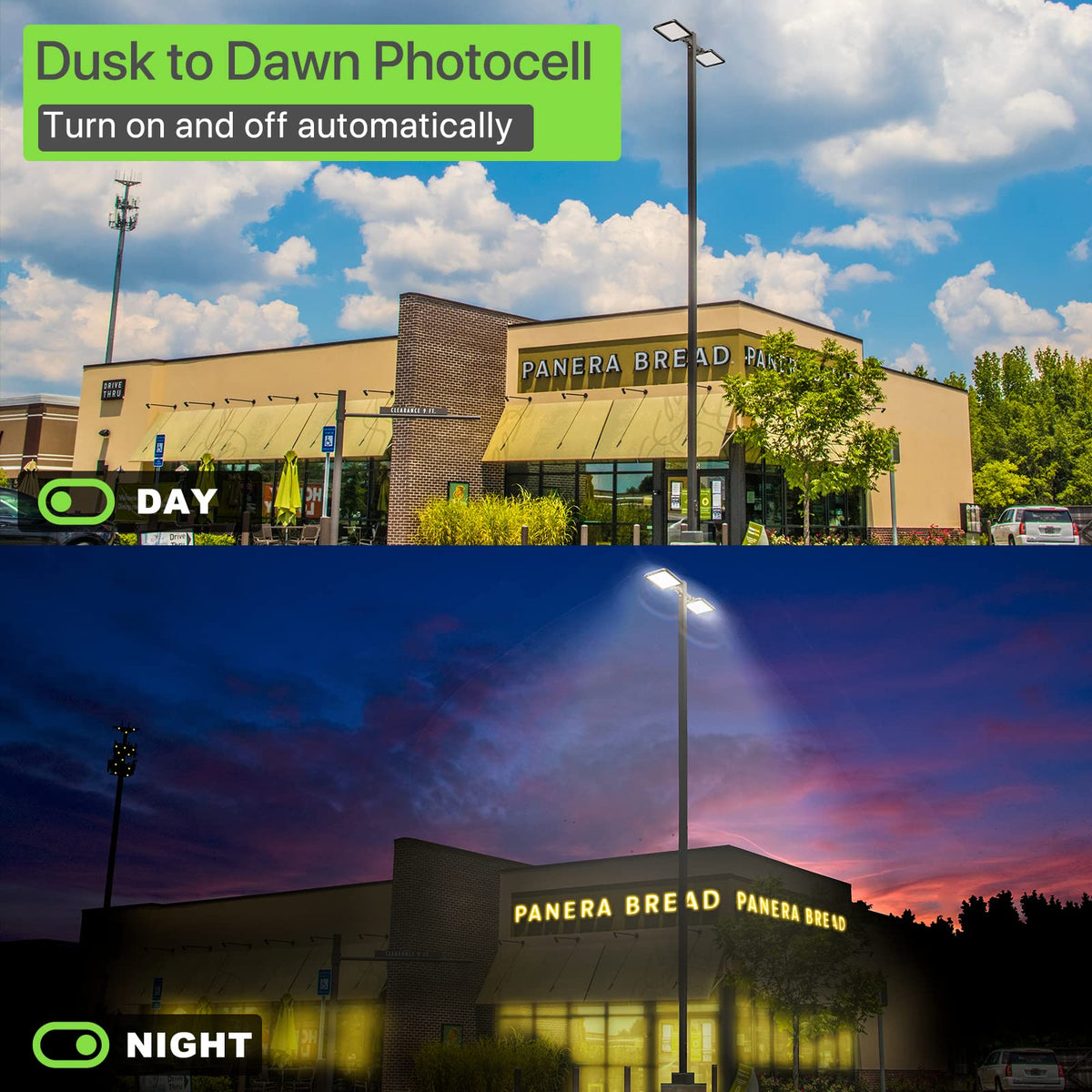 Q: How does the dusk to dawn photocell work on these lights?A: The dusk to dawn photocell automatically turns the Glitgate LED Parking Lot Lights on at sunset and off at sunrise, providing hassle-free operation and energy savings. This feature ensures that the lights only operate when needed, making them ideal for outdoor areas such as parking lots and driveways.