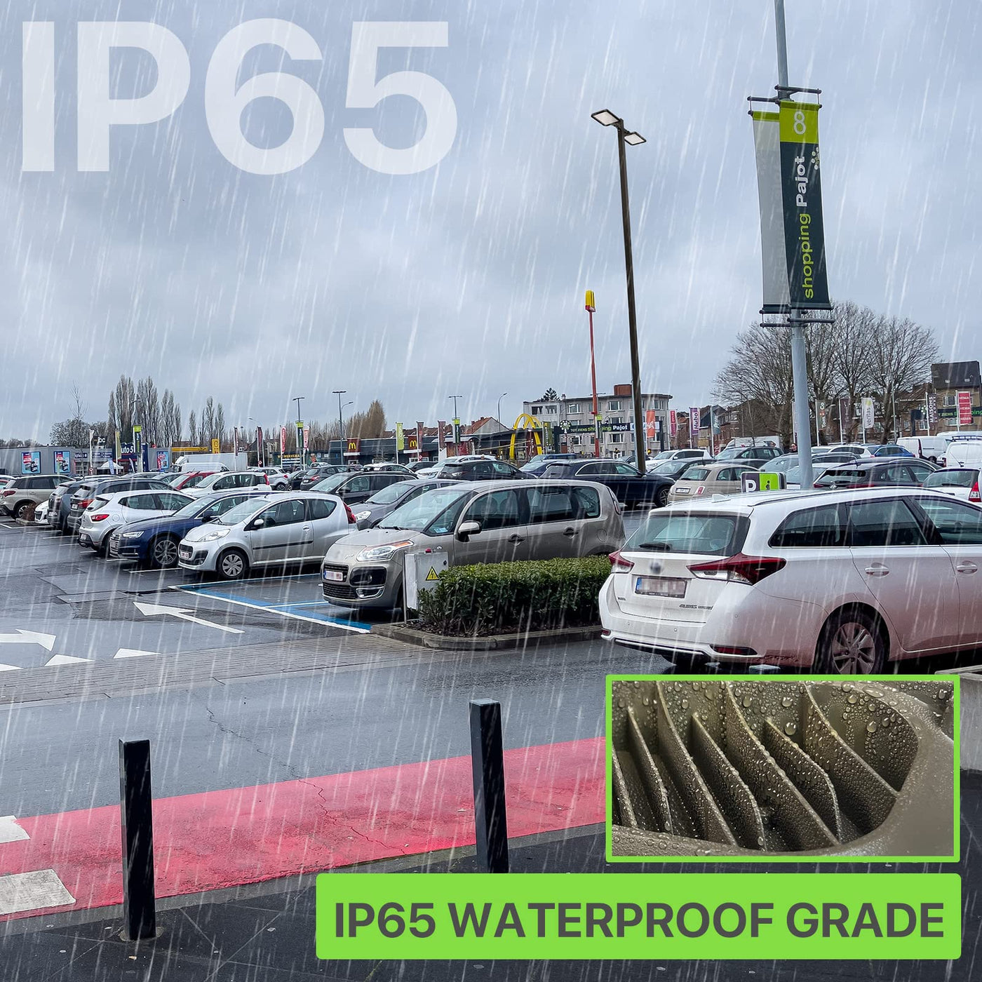 Q: Are these lights suitable for harsh weather conditions?A: Yes, the Glitgate 300W LED Parking Lot Lights have an IP65 waterproof rating, making them highly resistant to various weather conditions including rain, snow, and extreme temperatures. This durability ensures they are reliable for outdoor use in parking lots, yards, roadways, and driveways.