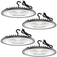 Glitgate High Bay Led Shop Lights 200W - 28000Lm 5000K Ip65 Waterproof High Bay Lights With Us Plug, Hanging Hook, 4 Pack Commer