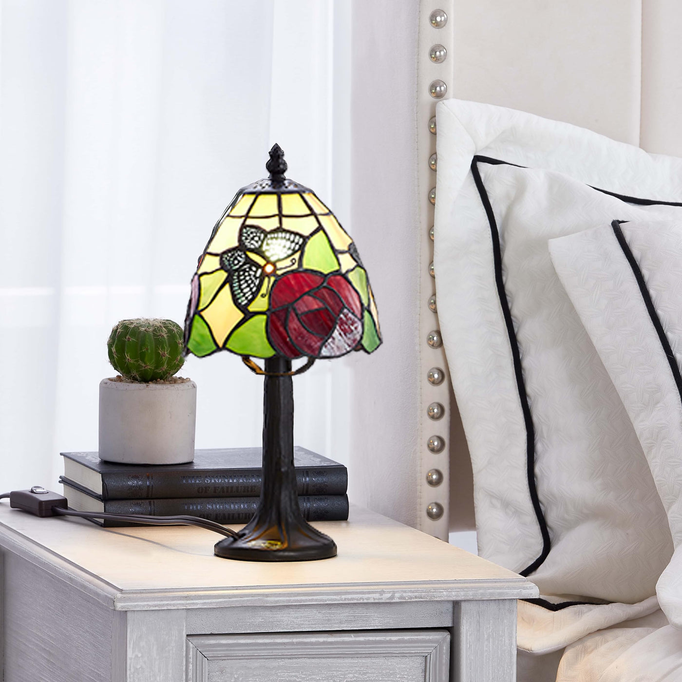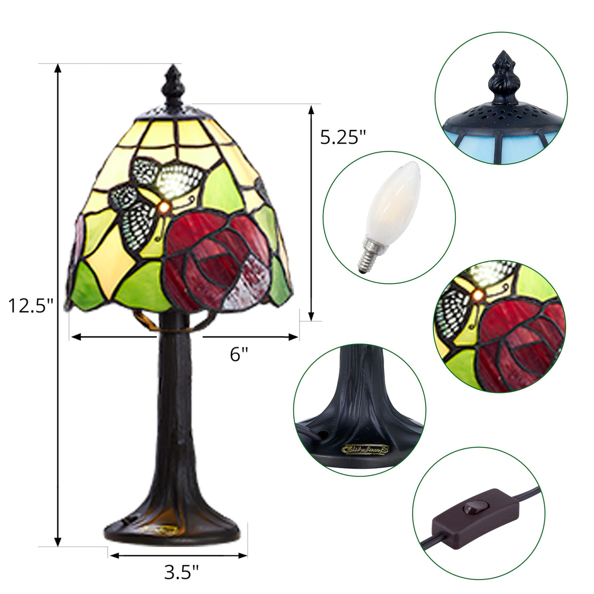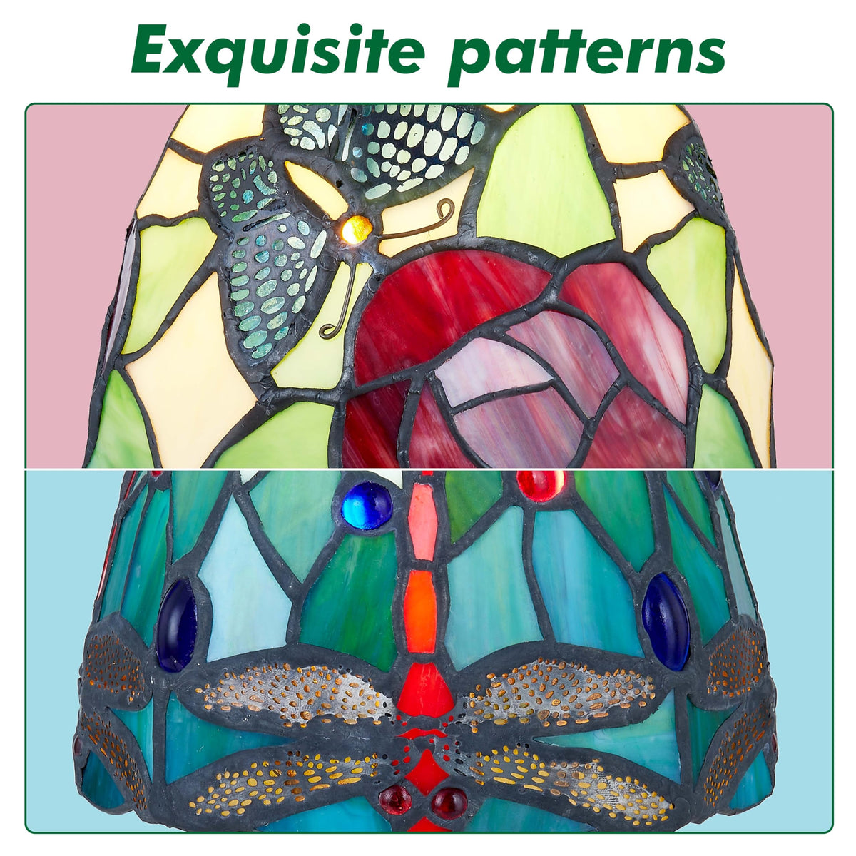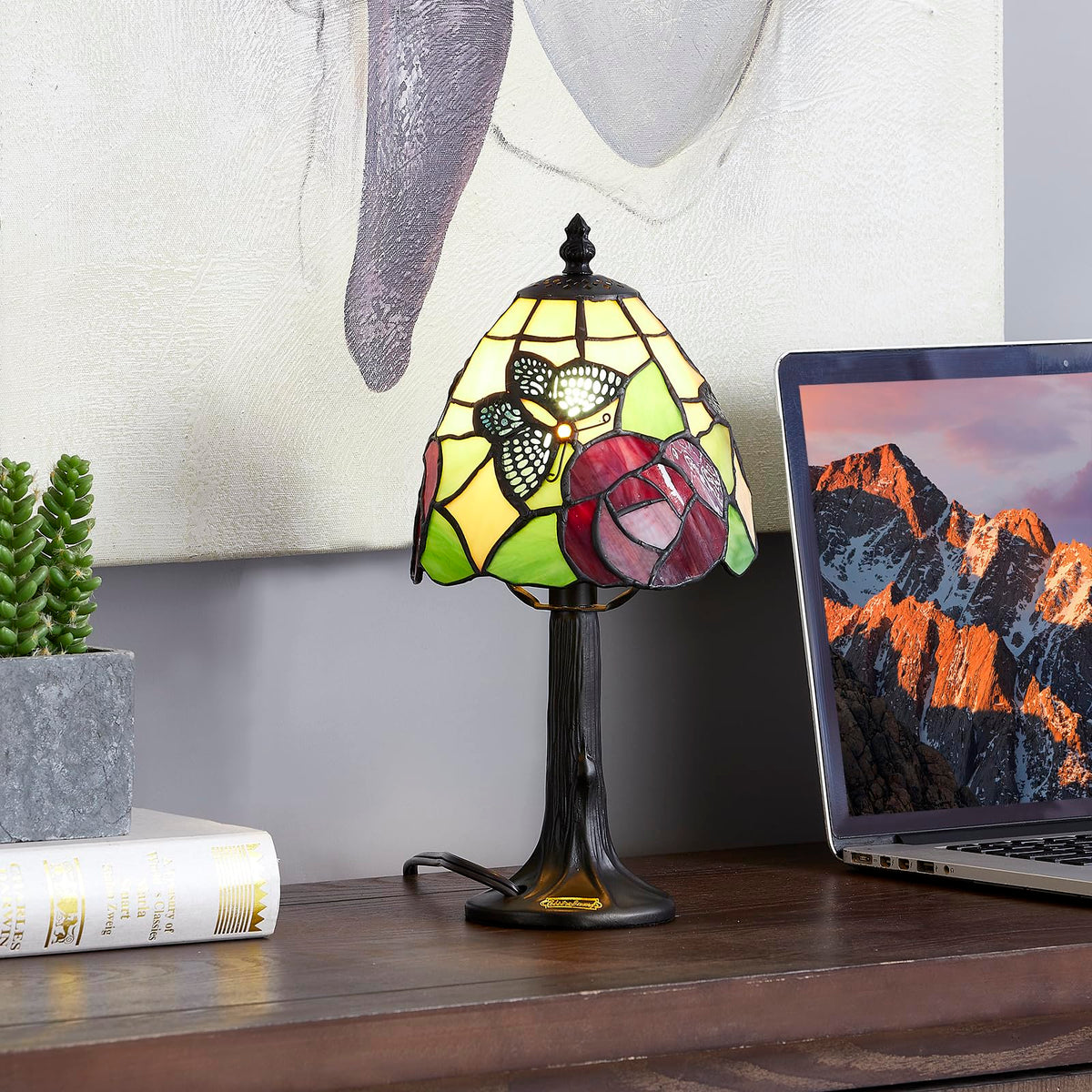 Glitzlamp Butterfly Tiffany Style Stained Glass Table Lamp With 6-Inch Wide Complicated Design Lampshade Resin Base For Living R
