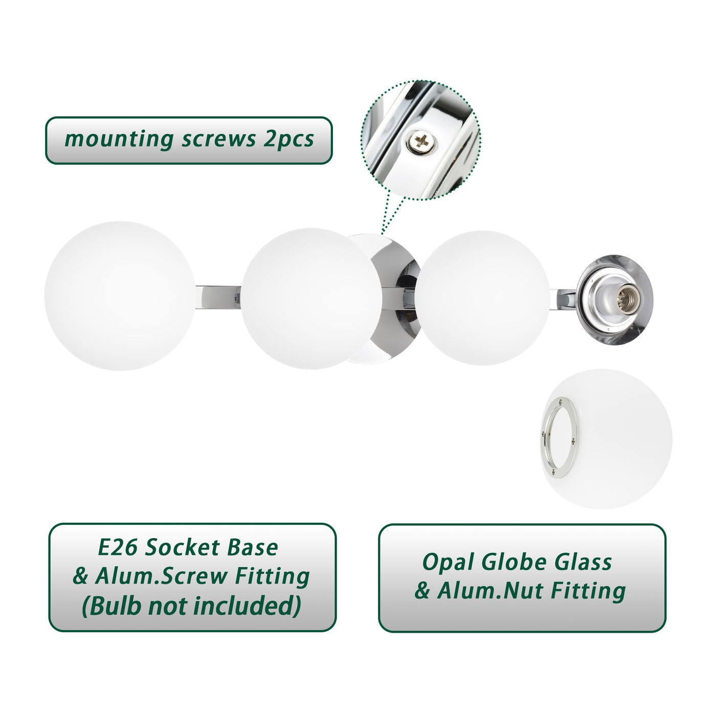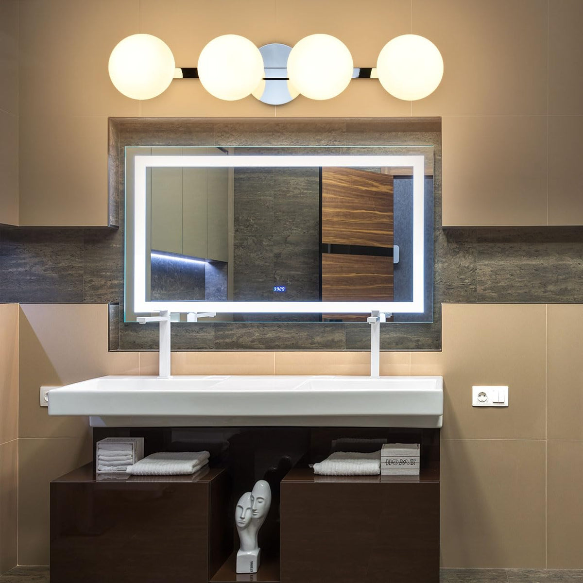 Globe Bathroom Vanity Light Fixtures, Modern 4 Lights Wall Lighting Chrome, Porch Wall Mount Light Fixture For Bathroom, Over Mi