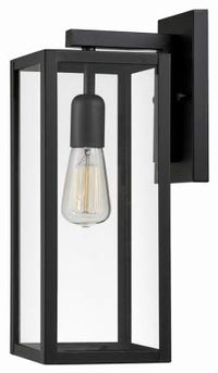 Q: Is the 1LGT BLK Wall Lantern suitable for outdoor use?A: Yes, the 1LGT BLK Wall Lantern is designed for outdoor use, featuring a matte black finish and clear glass that can withstand various weather conditions.