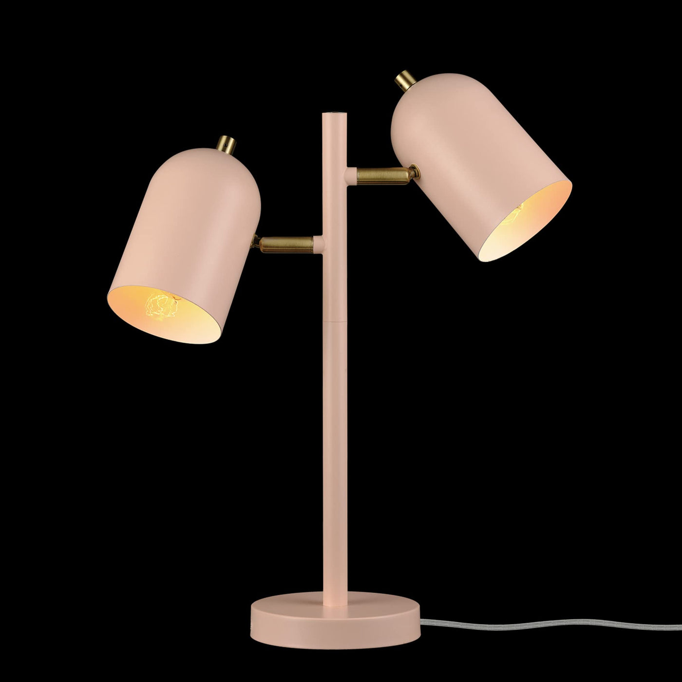 Globe Electric 30290 Carter 18'' 2-Light Desk Lamp, Matte Pink, Matte Brass Accents, 2.1A Usb Port, On/Off Rotary Switch On Each