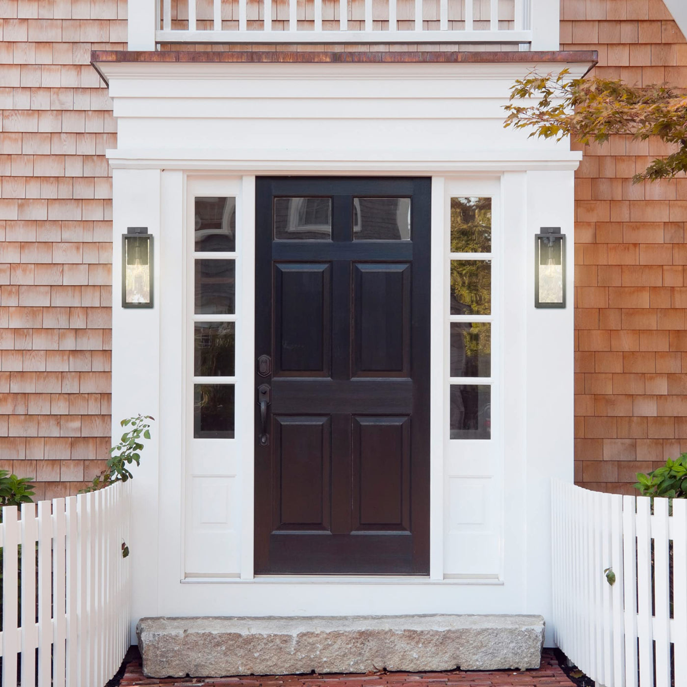 The clean lines, clear glass panels and overall shape of the Bowery Outdoor Wall Sconce creates a modern light with a farmhouse design feel. A vintage-inspired bulb would add the right embellishment to make this piece truly a work of art. The brushed dark bronze finish complements all decor and showcases your bulb in just the right way. This piece has such clean lines you can use it indoors too! To create a finished look, pair this piece up to have symmetry at your front door, in your kitchen, or anywhere else your heart desires.