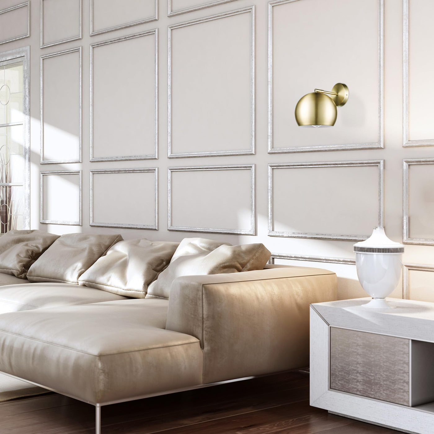 The timeless Novogratz x Globe Willow Wall Sconce is the perfect accessory. With a stunning matte brass finish and round shade, this metallic wall sconce brings a vintage glam feel to any room. The pivoting shade is perfect to direct the light while the slightly exposed bulb lets you create a variety of different looks. Use a vintage filament bulb to play up the vintage glam feel or modernize your sconce with a Smart bulb and have your light at your fingertips. Plus, you're not restricted by the need for an existing hardwire connection - simply use the six-foot cord to place your sconce anywhere there's an outlet. The options are endless! Decorate with the Novogratz and Globe Electric - lighting made easy.