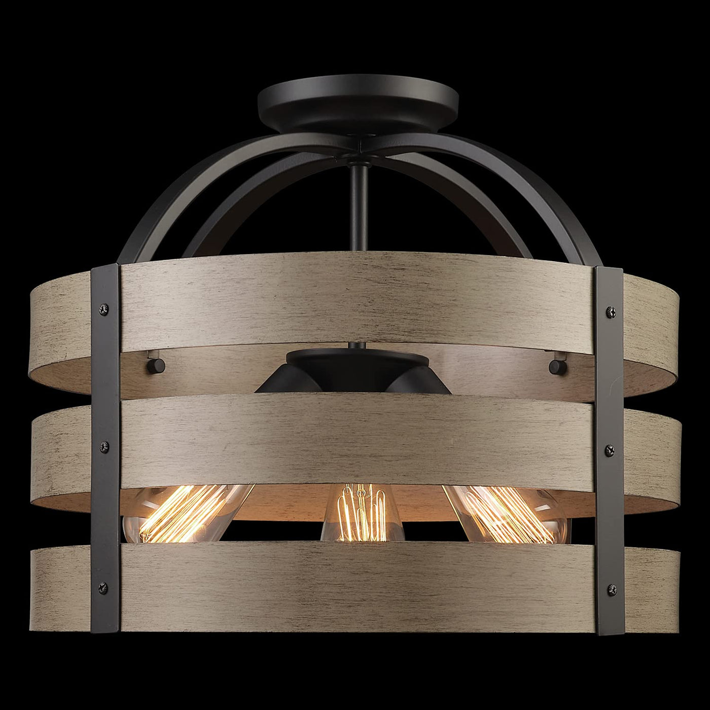 Globe Electric 60804 Maddox 3-Light Flush Mount Ceiling Light, Metal, Matte Black, Faux Wood