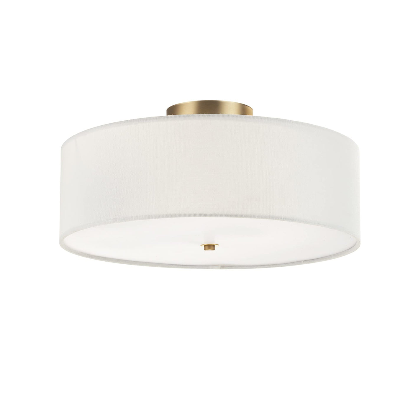 Ceiling lights can not only light up your whole room - they're also a great way to show off your personal style. Utilizing a white fabric shade and a matte brass finish, the Kyle 2-Light Flush Mount Ceiling Light offers a traditional minimalist feel. The white linen shade complements with all decor styles while providing a warm even light. Ideal for a dining room, entryway or bedroom, this light will entice your senses as well as illuminate your home.