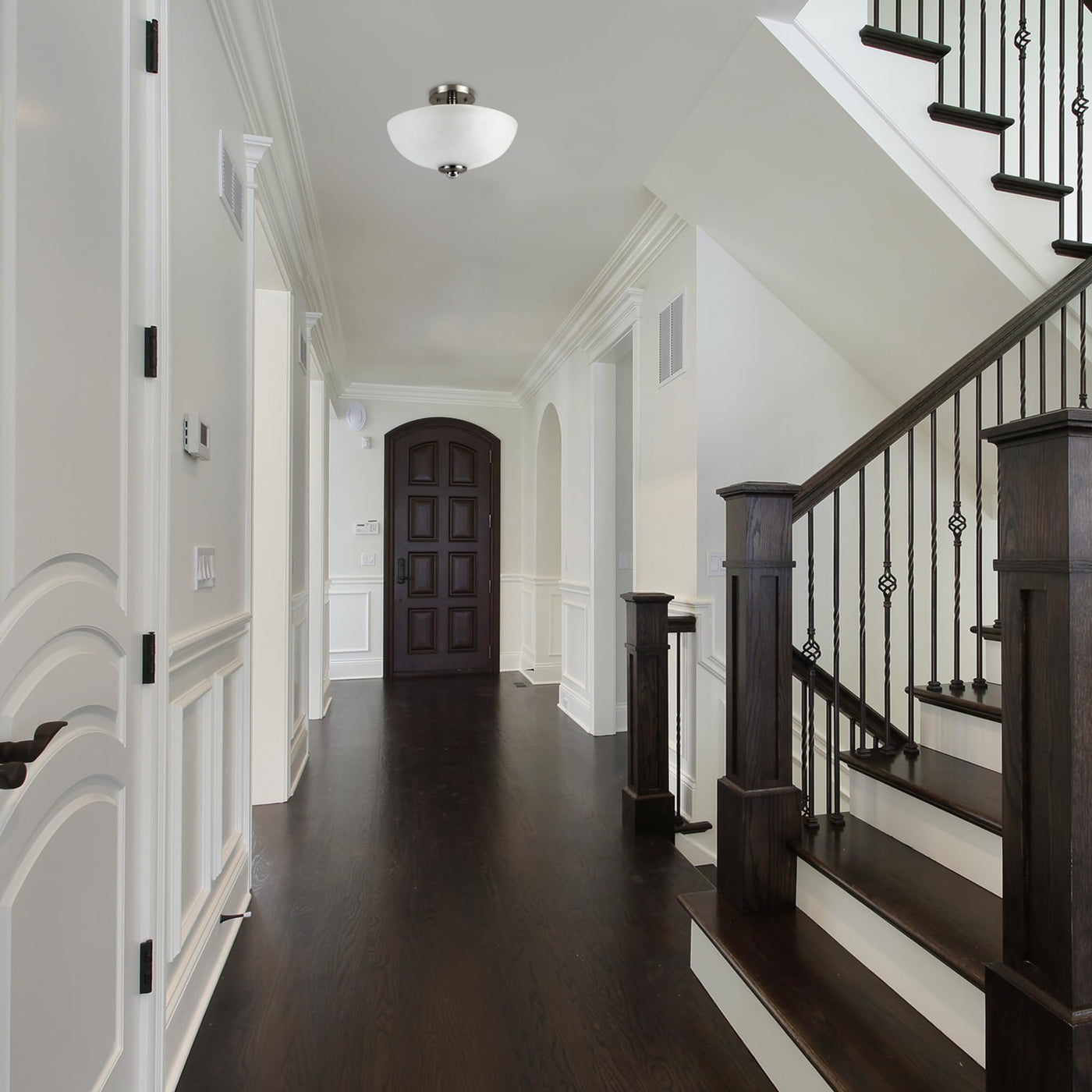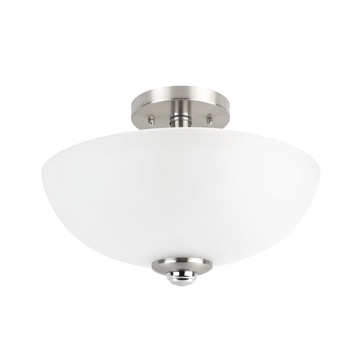 Globe Electric 63357 2-Light Semi-Flush Mount Ceiling Light, Brushed Nickel, Chrome Accents, Frosted Glass Shade, Kitchen, Light