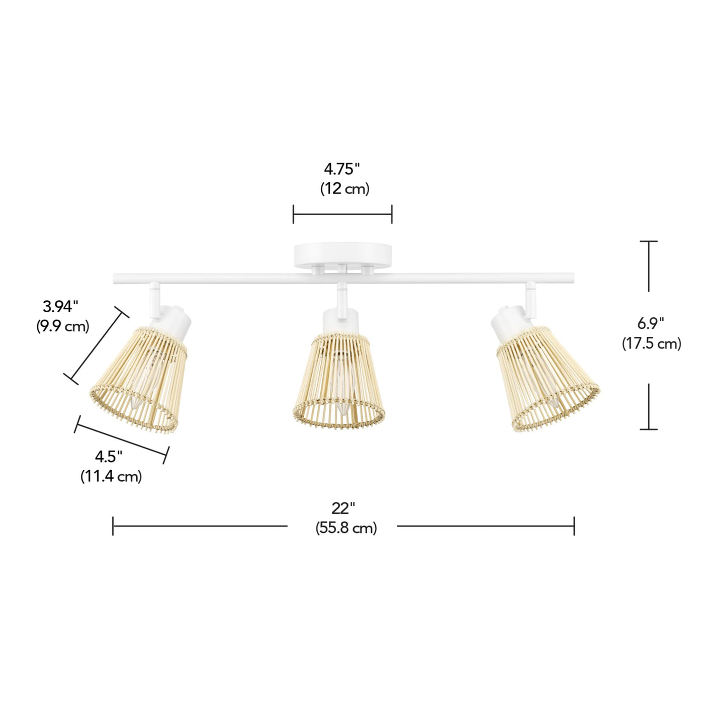 Q: What styles of home decor does this track lighting complement?A: The sleek matte white finish paired with natural bamboo shades of the Globe Electric 3-Light Track Lighting embodies the Japandi style, making it a versatile choice that complements a range of home decor styles, from modern to traditional.