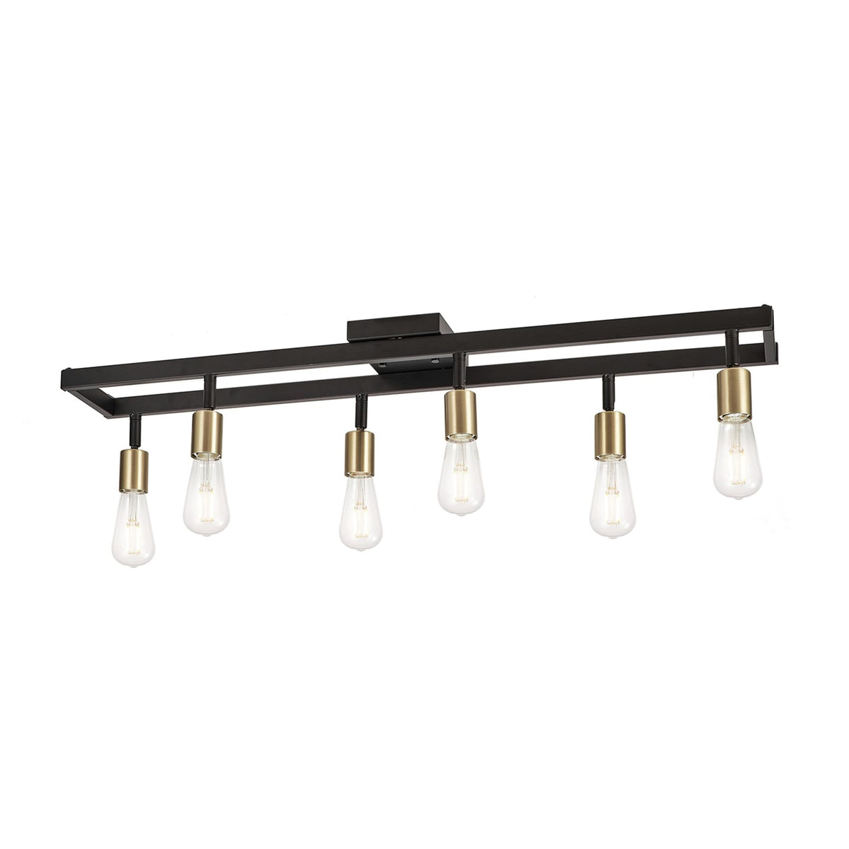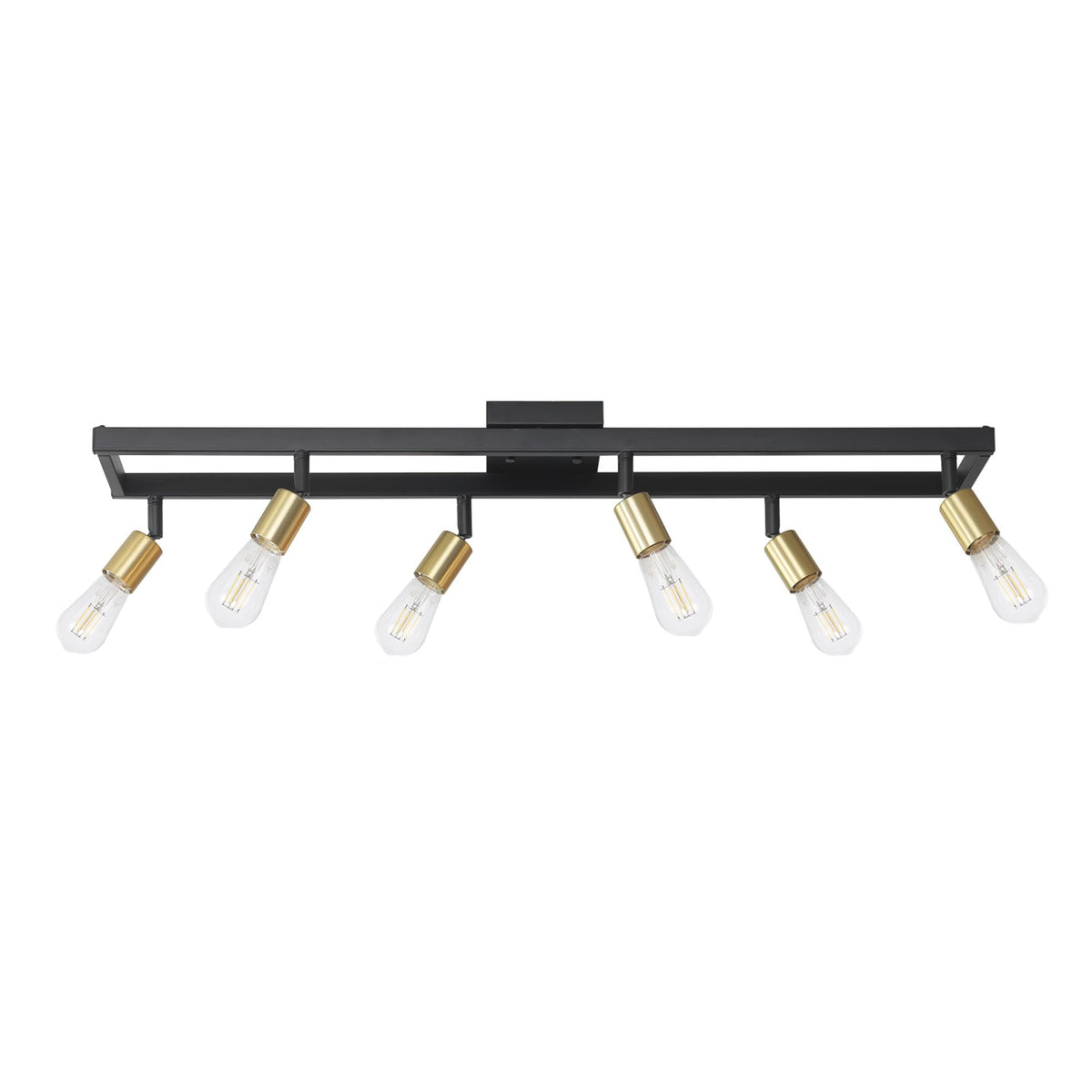 Globe Electric 64000096 36'' 6-Light Track Lighting, Matte Black, Matte Brass Pivot Sockets, Ceiling Lamp For Bedroom, Kitchen,