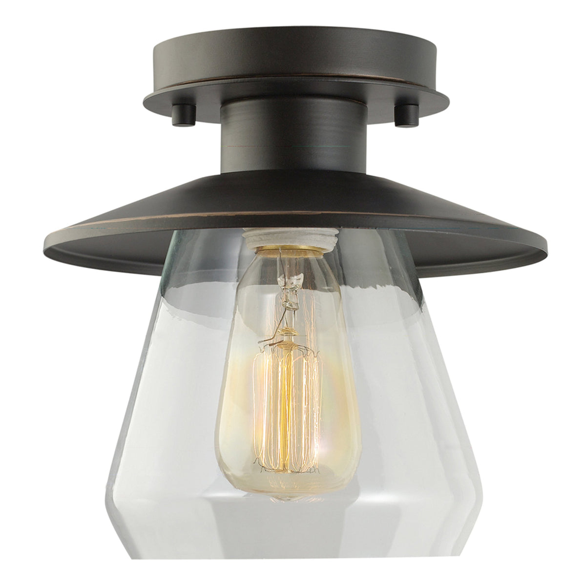Globe Electric 64846 1-Light Semi-Flush Mount Ceiling Light, Oil Rubbed Bronze, Clear Glass Shade, Ceiling Light Fixture, Bedroo