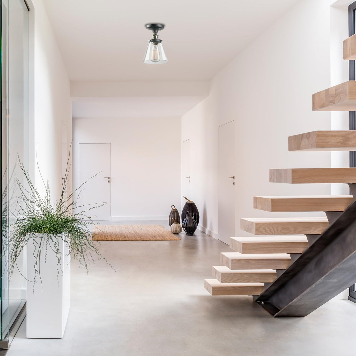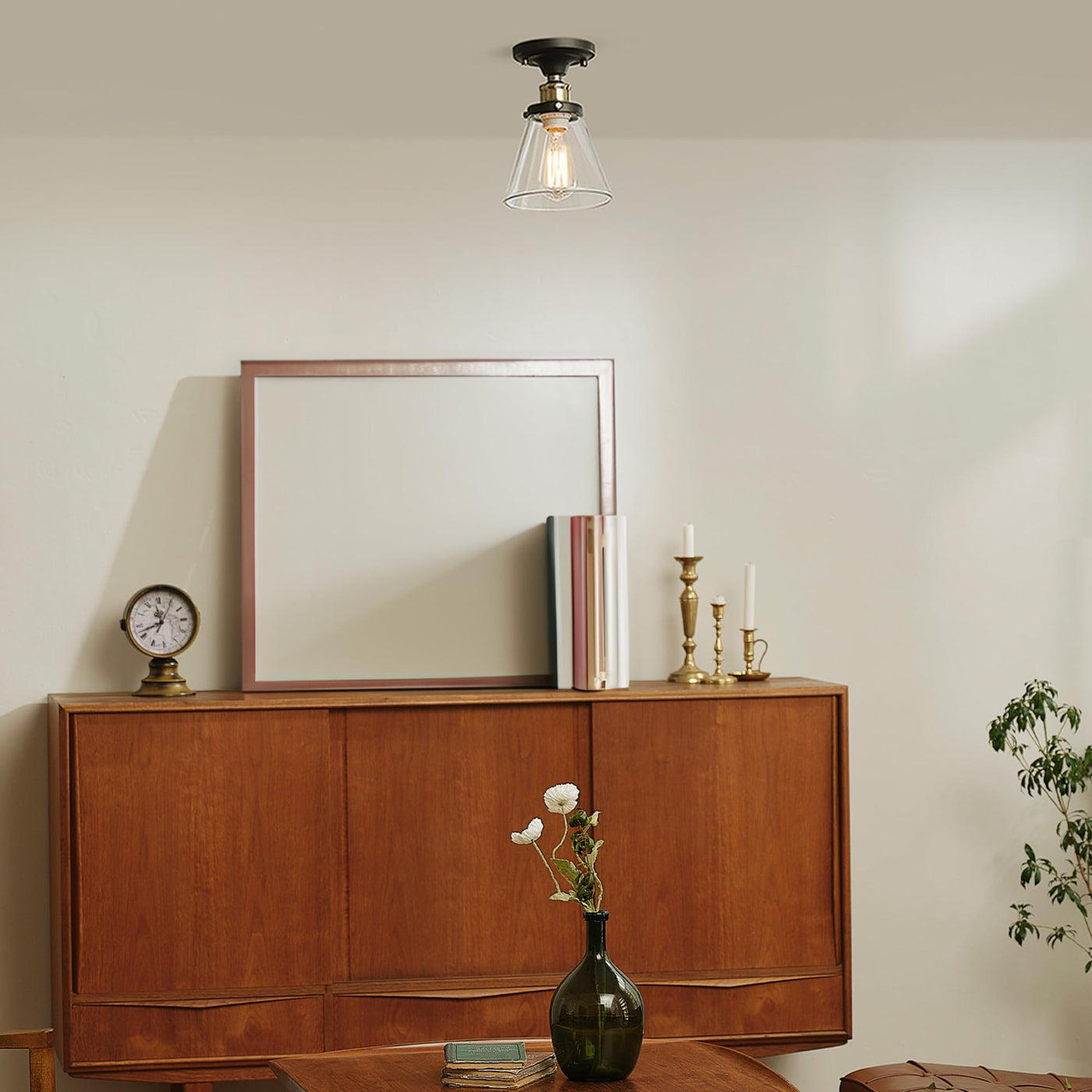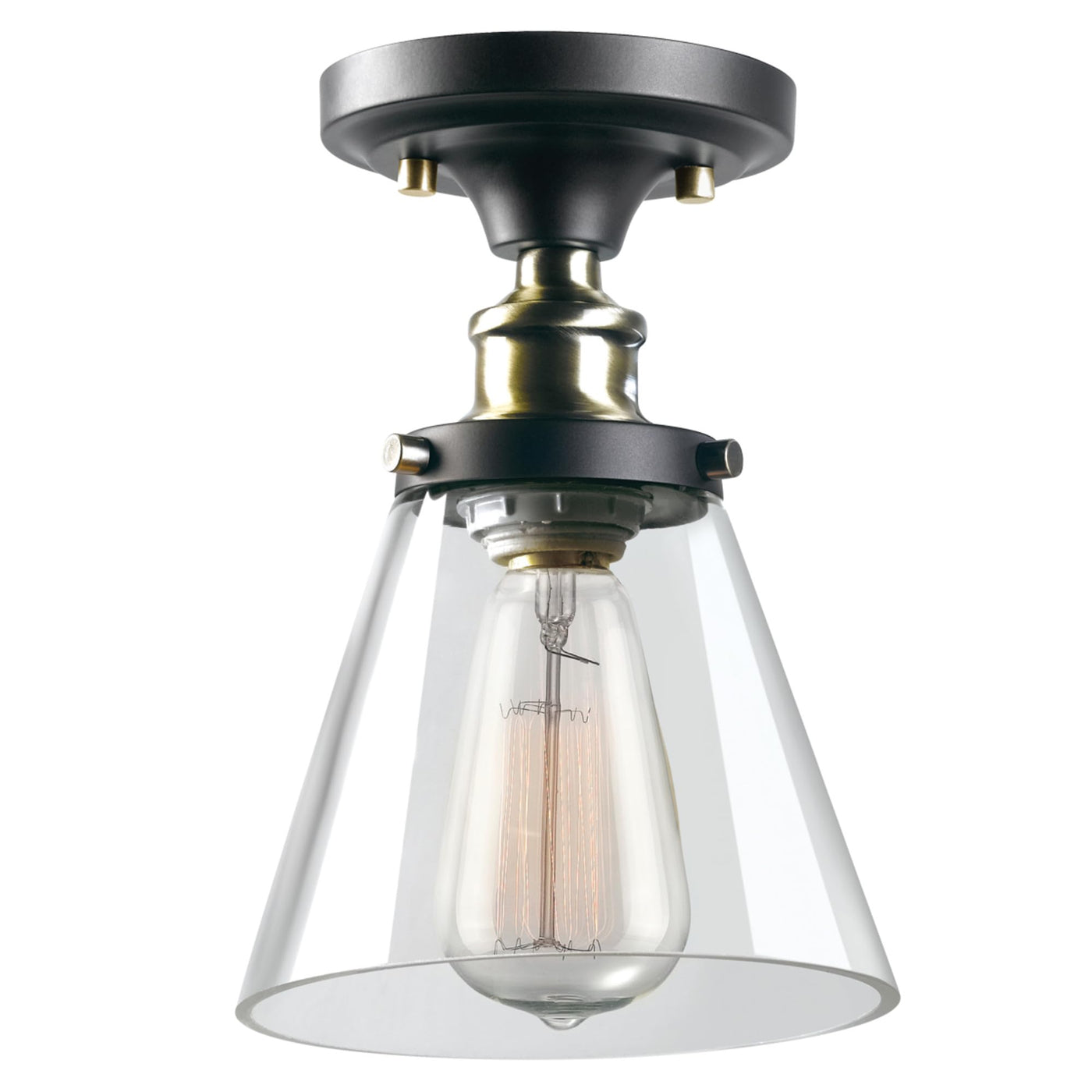 Fashioned after vintage inspired lighting Globe Electrics Jackson 1-Light Flush Mount adds a rustic industrial feel to any room. Fully compatible with dimmable LED bulbs and dimmer switch, the clear glass shade and exposed bulb easily creates lighting ambiance and different moods. Ideal for use in kitchens, restaurants, bars, and dining rooms. Includes all mounting hardware for quick and easy installation. Requires one standard medium based 60W bulb (sold separately). Check out Globe Electrics selection of designer vintage Edison bulbs to create a truly unique design.