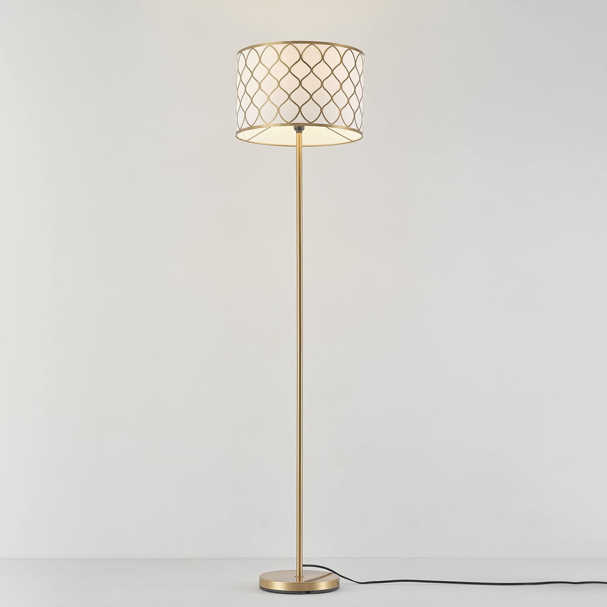 The Novogratz x Globe Kinsley Floor Lamp offers grandmillennial styling for any room. The matte brass finish and metal mesh overlay that sits on a cotton shade combine to add a vintage design element to any space while the overall shape of the floor lamp is both modern and functional. This 65-inch floor lamp brings a retro focal point to your home and is ideal for the living room, bedroom or office for a glamorous style. With a rotary on/off switch on the socket for easy access and a five-foot black cord, you can place this floor lamp anywhere in your room without worrying about finding a spot near the wall outlet. The Novogratz and Globe Electric - stylish, decorative lighting made easy.
