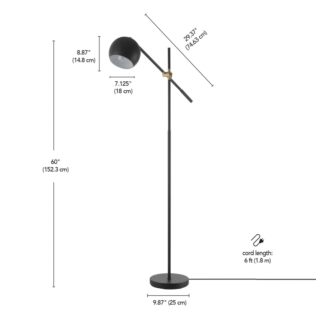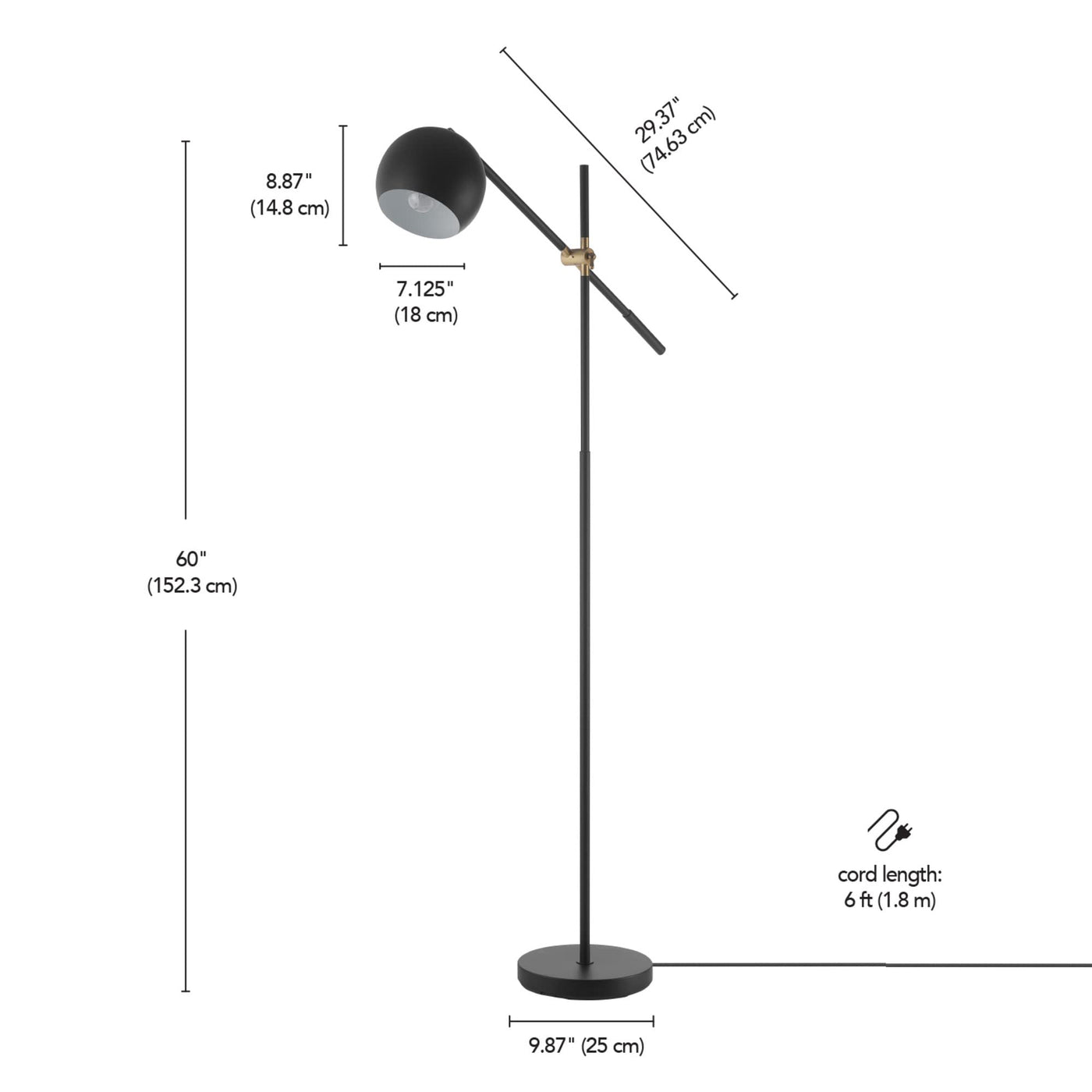 Globe Electric 65911 60'' Floor Lamp, Matte Black, Brass Pivot, Matte Black Shade, In-Line On/Off Foot Switch