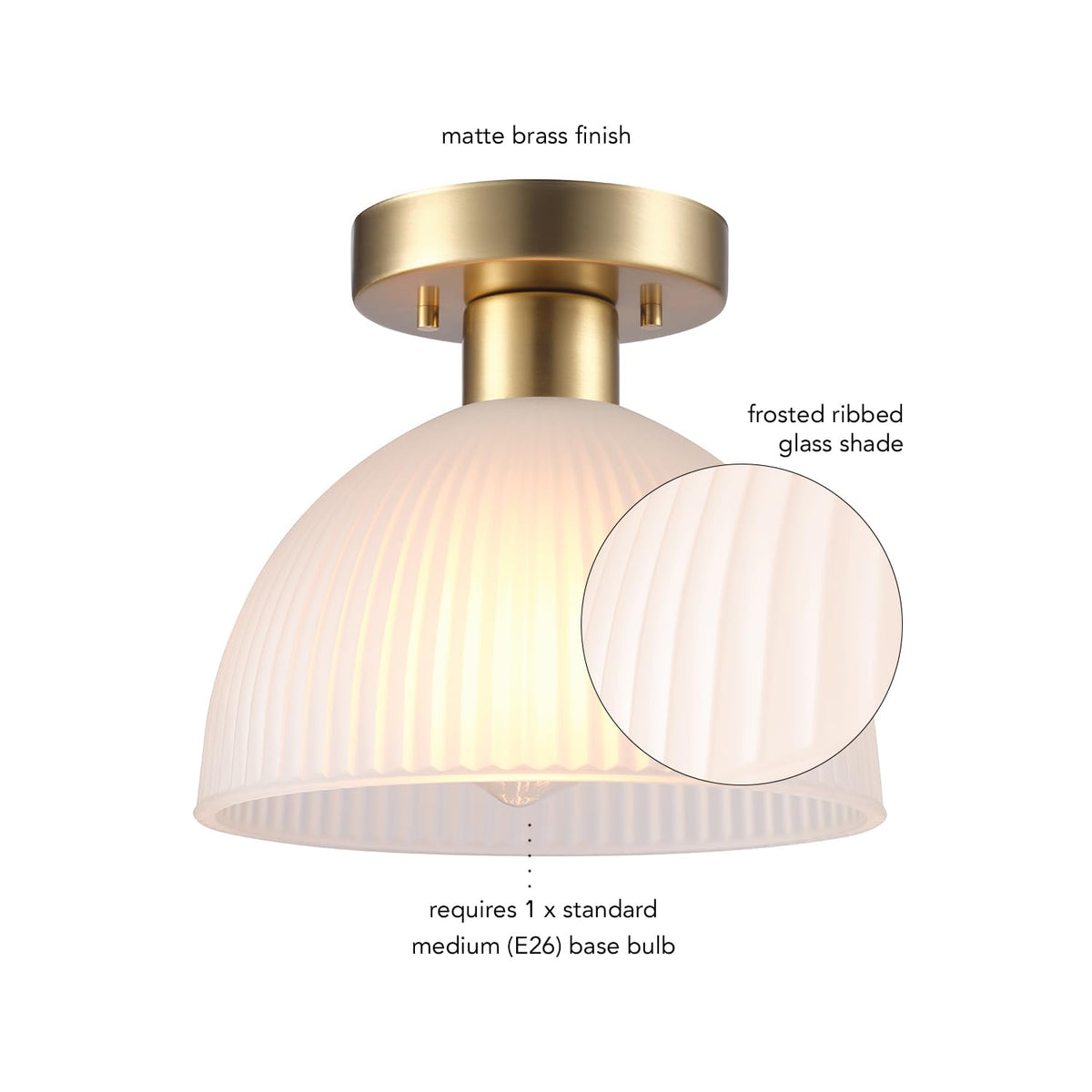 Update Your Home With The Globe Electric 1-Light Matte Brass Semi-Flush Mount Ceiling Light, Its Timeless Shape And Frosted Ribbed Glass Shade Combines Functionality With Style, Bringing Comfort And Glamour To Any Space. With Easy Installation And Fully Dimming Capabilities (Dimmer Switch Sold Separately) This Ceiling Light Is Perfect For Unwinding After A Long Day Or Creating A Welcoming Ambiance For Entertaining Guests. Only Requiring 1X E26/Medium Base 60W Bulb (Sold Separately), Compatible With Led And Incandescent Bulbs, The Frosted Ribbed Glass Shade Emits A Warm And Diffused Light, Creating A Cozy And Relaxing Vibe In Your Room. Explore Versatile Placement Options For A Modern And Glamorous Touch Or Make It Smart With A Globe Electric Smart Bulb, Unlocking Limitless Lighting Solutions!