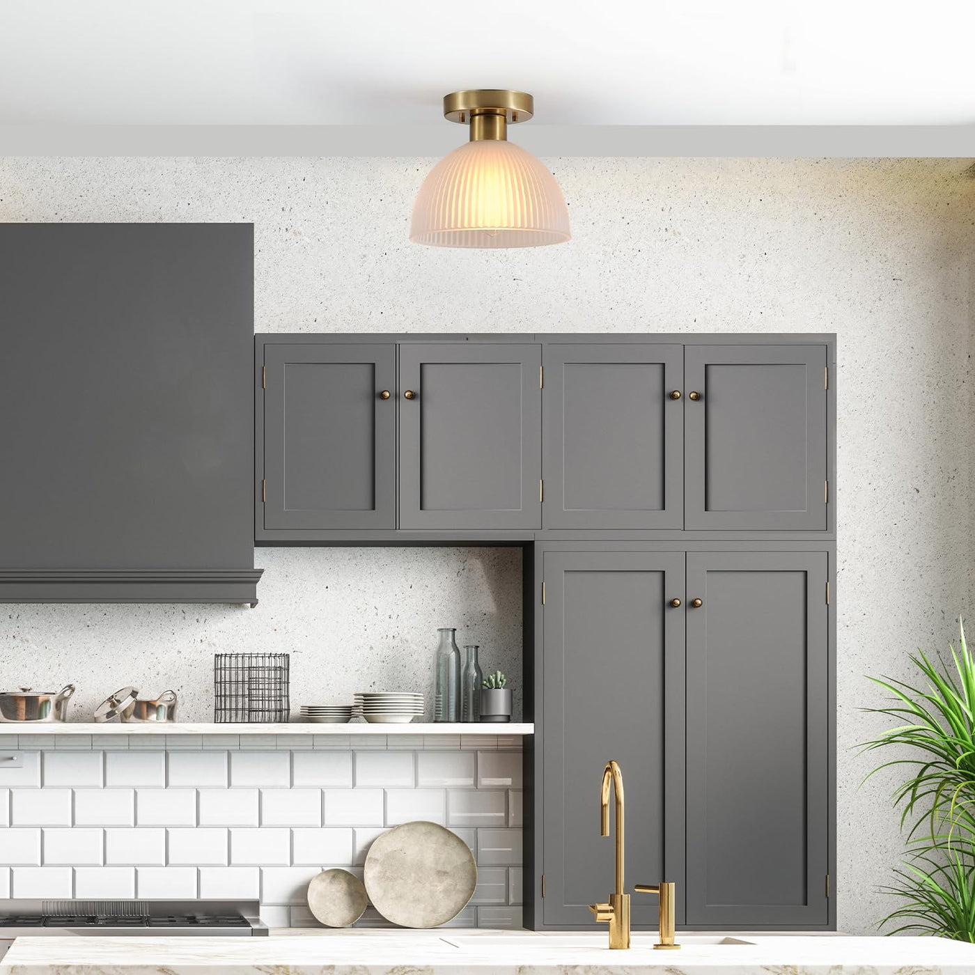 Globe Electric 66000129 1-Light Semi-Flush Mount Ceiling Light, Matte Brass, Frosted Ribbed Glass Shade, Home Improvement, Dinin