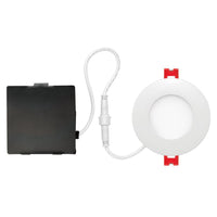 3” 6W LED Integrated Ultra Slim Recessed Kit delivers 370 lumens of light output, 3000K color temperature, 90 CRI and 50,000 hours of illumination. Equipped with a dimmable construction and 3.25” hole. Available in an attractive white finish. Product is ES, IC, wet, airtight, ETL, CEC Title 24 approved.
