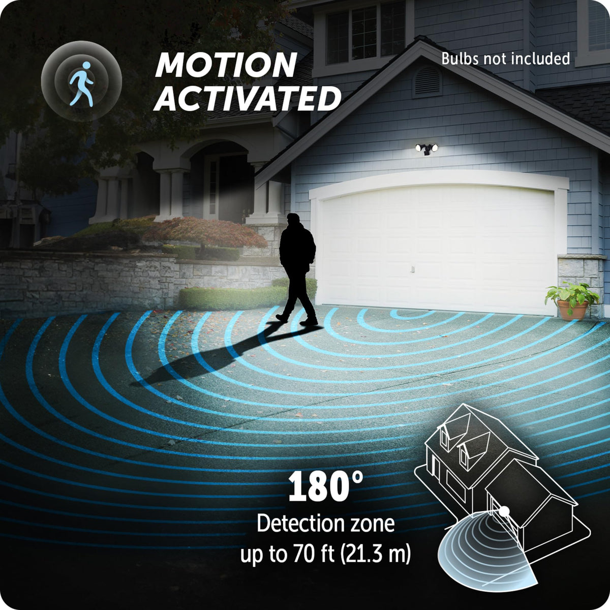 - **Bulb Requirements**: For optimal performance, the Motion Sensor Swivel Arm requires two Standard Base Dimmable E26 PAR38 Shape 120W Max Bulbs, sold separately. Compatible with both incandescent and LED bulbs, allowing you to choose the best lighting solution for your needs.