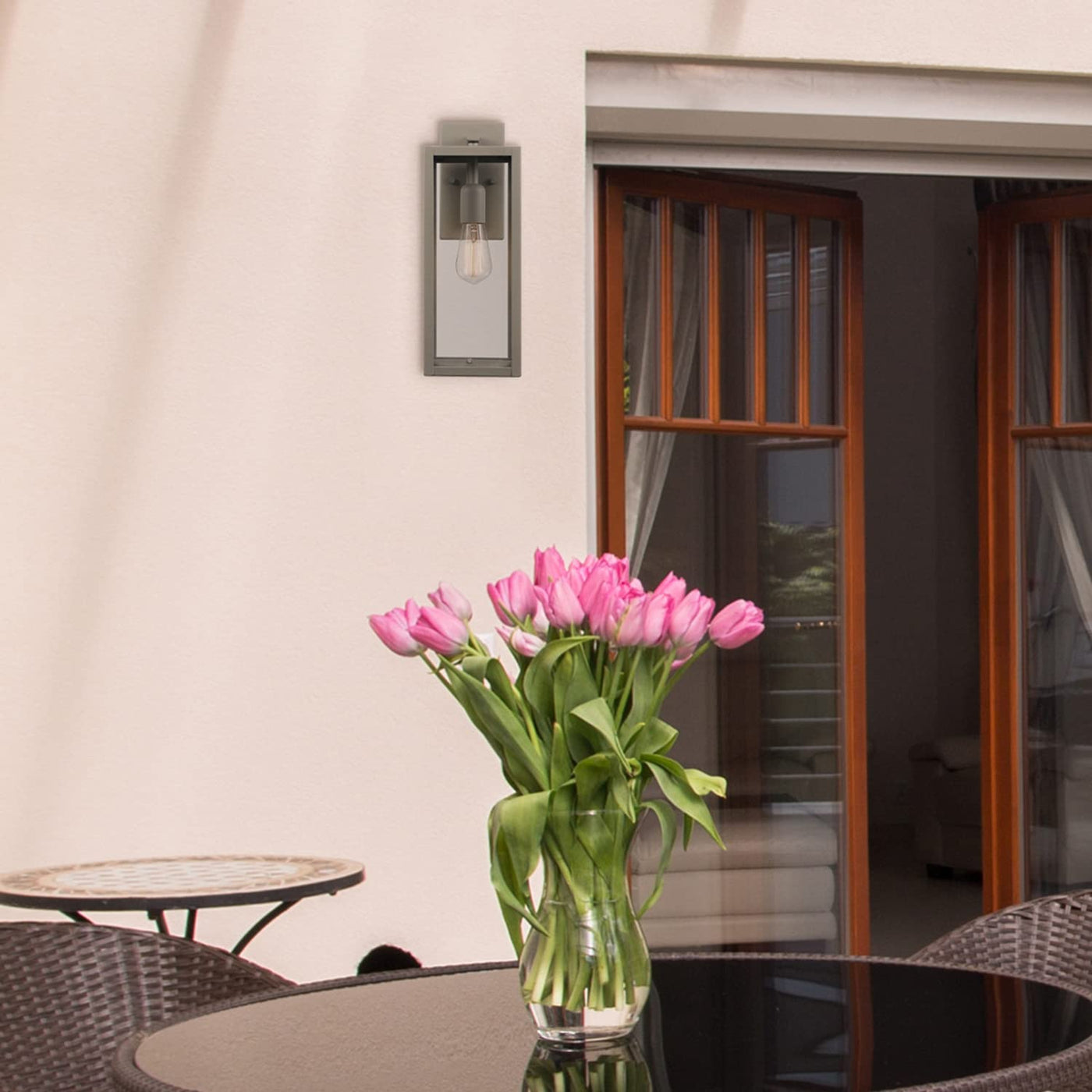 Globe Electric Bowery 1-Light Matte Gray Wall Sconce With Clear Glass Shade, Indoor/Outdoor