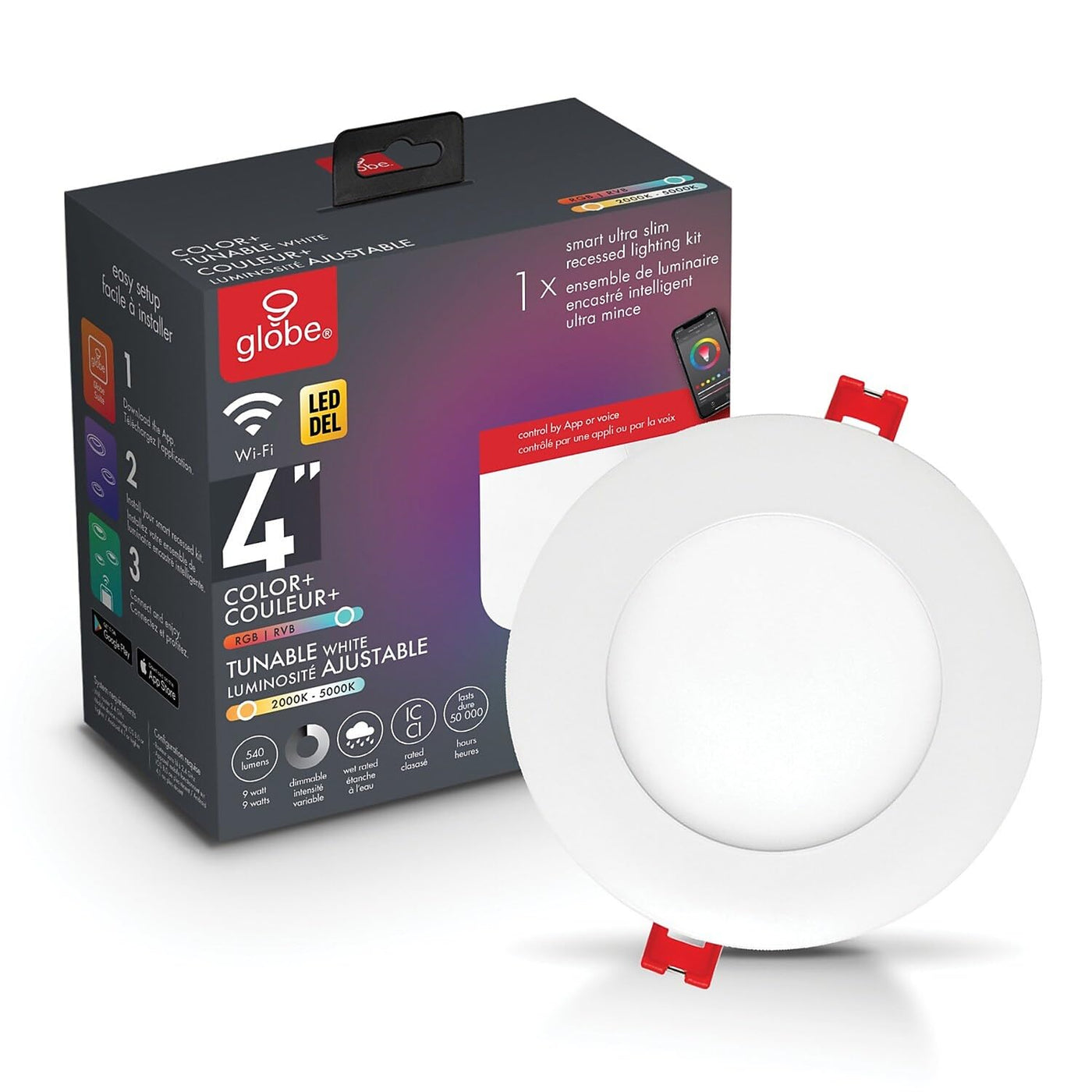 GLOBE Electric Collection Wi-Fi Smart 4 Ultra Slim Multicolor Changing RGB Tunable White Recessed Lighting Kit, No Hub Required,