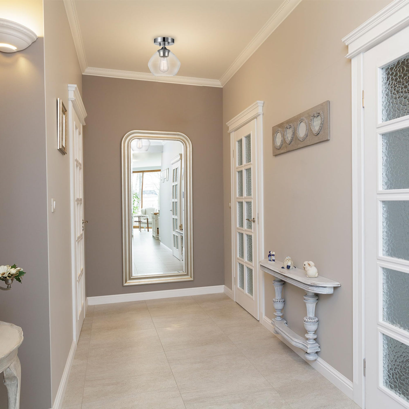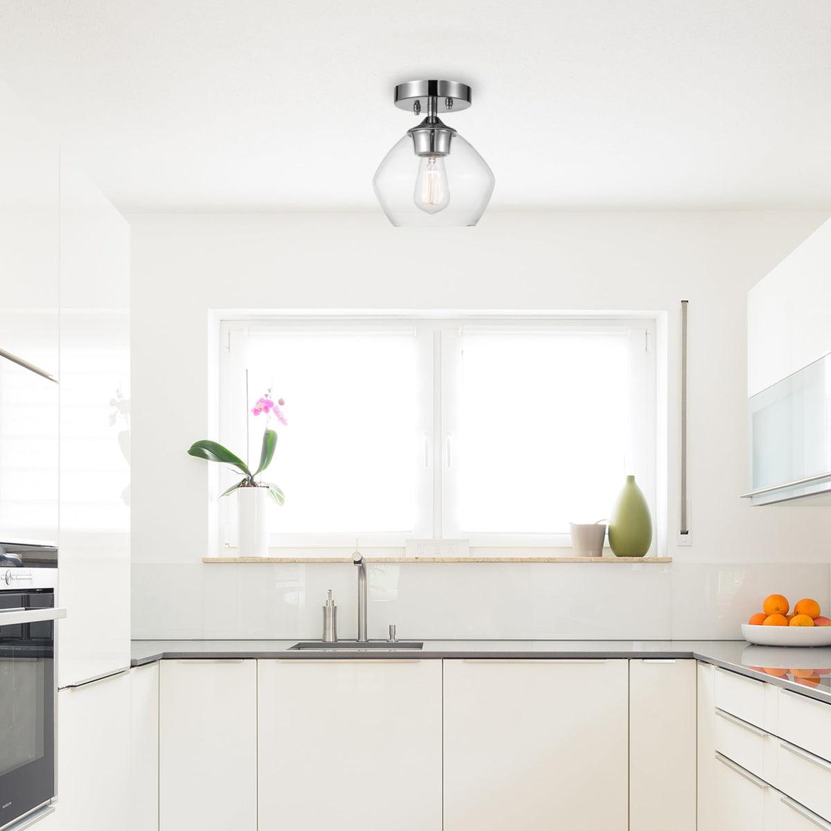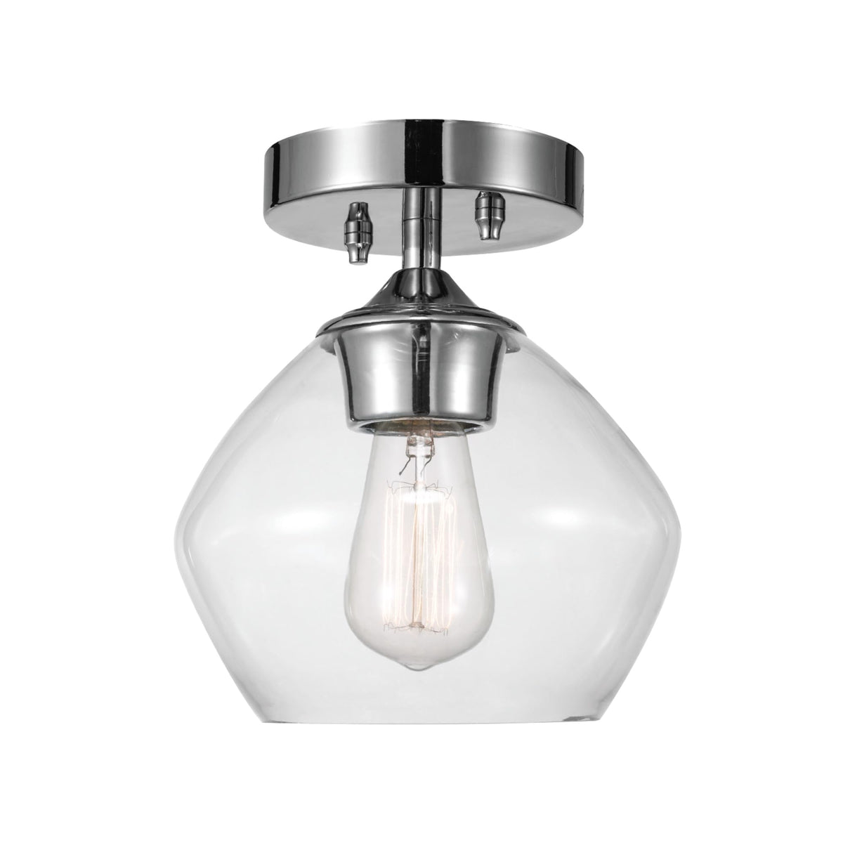 Elevate your home today with the 1-Light Semi-Flush Mount Ceiling Light by Globe Electric. Utilizing a stunning shape and color pallet to bring an impressive design style into your home, the curved clear glass shade draws out a mid-century look while the matte black finish and diamond knurl textured socket adds a modern touch. Attached to the ceiling with a round canopy, the dimmable semi-flush mount light has an open shade so you can show off the bulb of your choice and complete the desired design style. Make your lighting smarter by adding a Globe Electric Smart bulb. Simply screw it in and unleash endless lighting possibilities through your phone!