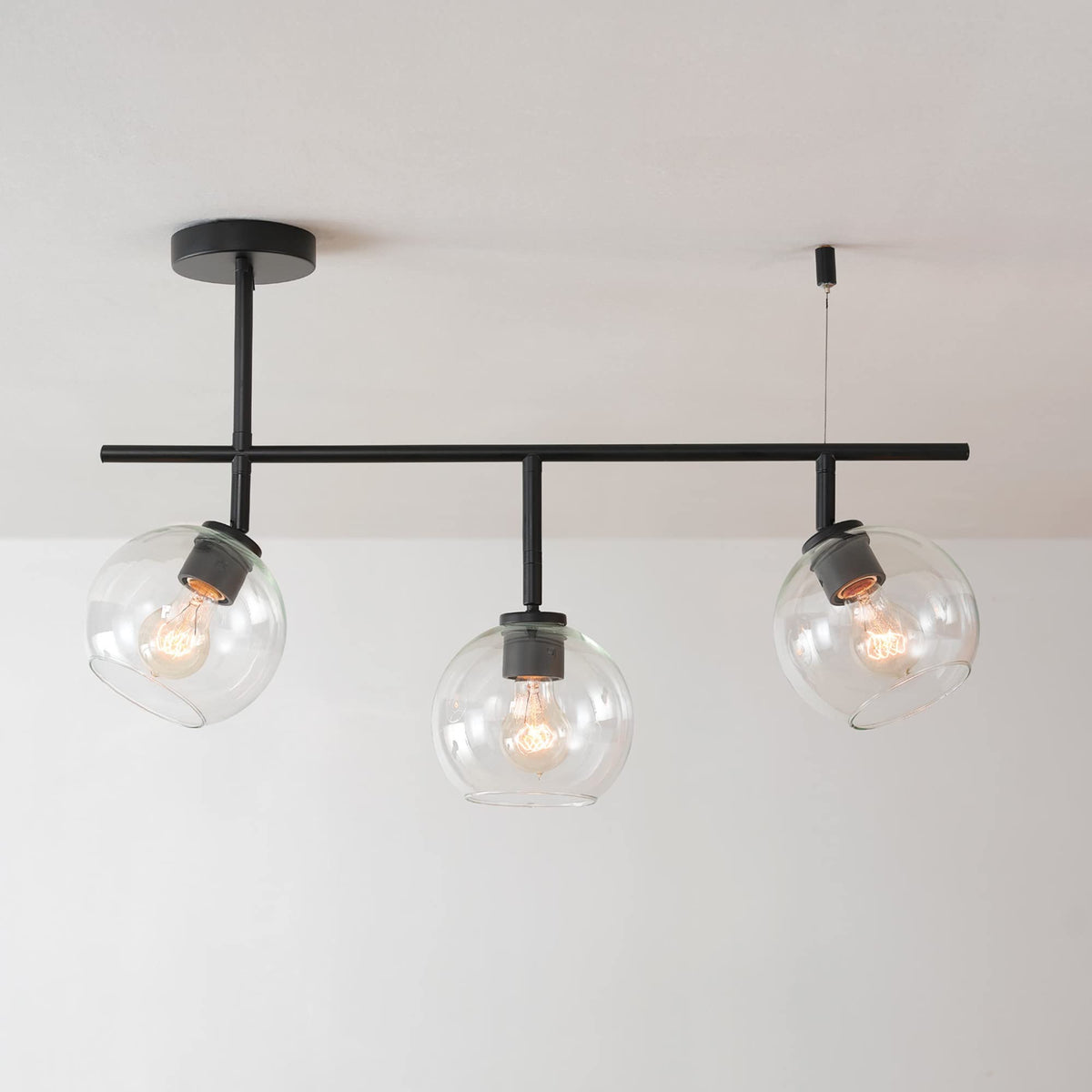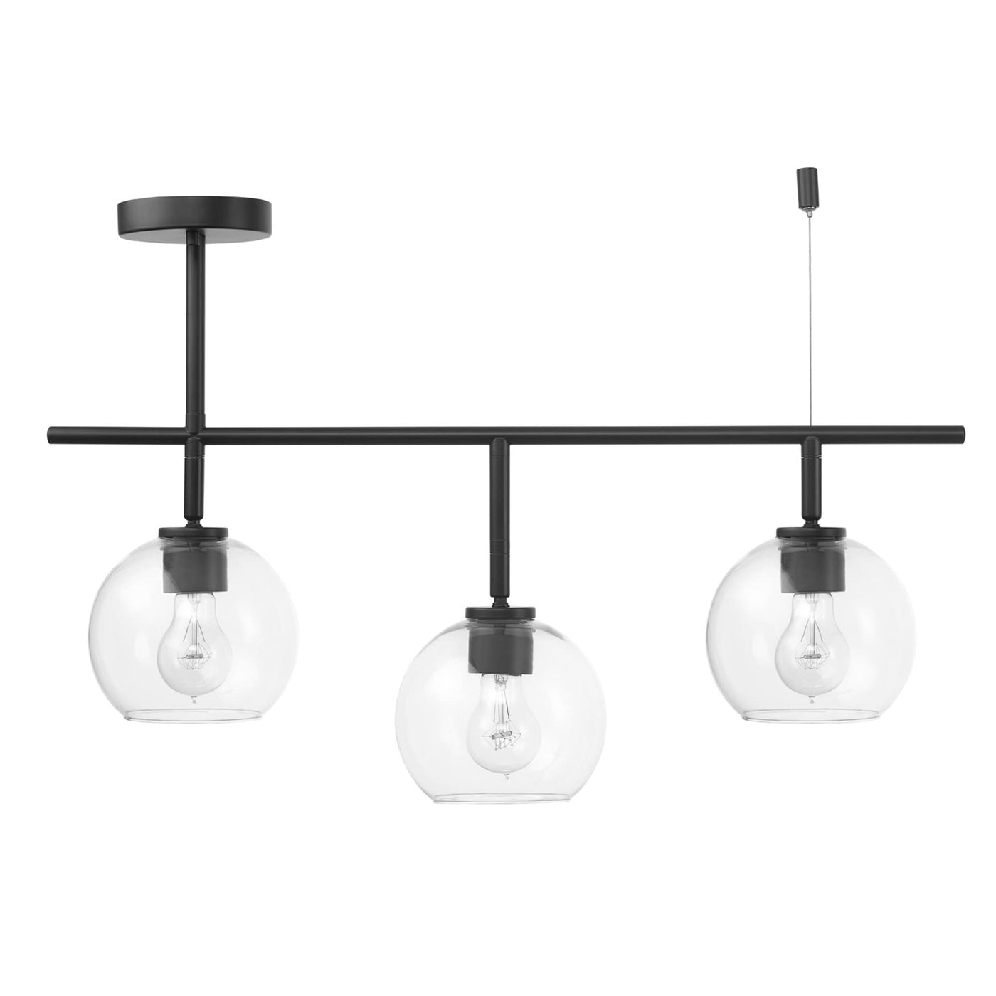 With Mid-Century Modern Styling, The Mika 3-Light Track Light Is The Answer To All Your Lighting Needs. Clear Glass Shades Are Accented With A Side Canopy Feature Emphasizing The Modern Design Trend, While The Center Track Head That Hangs Lower Than The Rest Brings A Mid-Century Vibe. Not Your Average Track Light, The Shades Create Gorgeous Ambient Lighting While The Matte Black Finish Completes The Luxurious Look. This Light Is So Versatile, It Completely Transforms Any Room Into A Mid-Century Modern Dream. Finish The Design By Showcasing The Bulb Of Your Choice. Try Vintage Edison Bulbs To Complete The Desired Feel Or Try Round Bulbs For A Completely Unique Look.