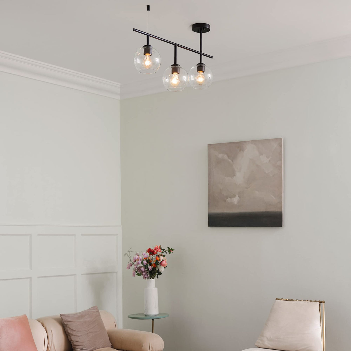 Q: What style does the Mika Track Light represent?A: The Mika Track Light features a mid-century modern design characterized by a side canopy design, clear glass shades, and a matte black finish. This trendy look complements various decor styles and enhances the aesthetic of any room.