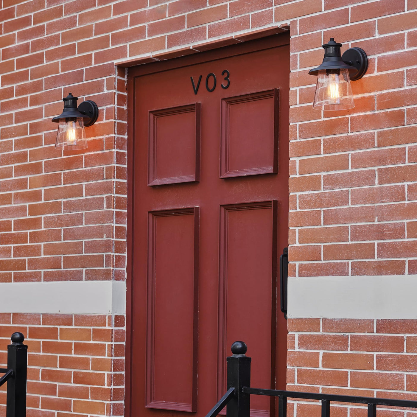 Q: How far can the motion sensor detect movement?A: The motion sensor on this outdoor wall sconce has a detection range of up to 30 feet, with a 150-degree field of view. This makes it ideal for enhancing security by illuminating your outdoor spaces when movement is detected.
