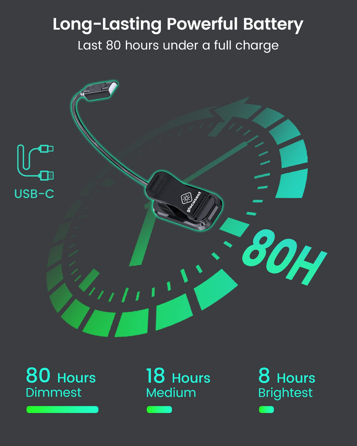 Glocusent Lightweight 10 Led Book Light For Reading In Bed, Eye Care Clip-On Book Reading Light, Rechargeable & 80+Hrs, 3 Bright