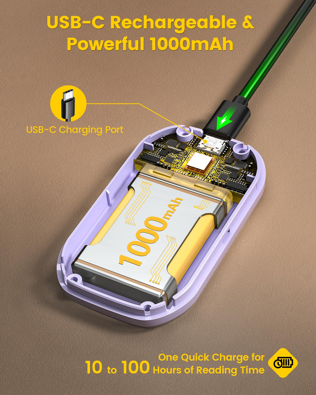 - **Long-lasting Rechargeable Battery**: The built-in 1000mAh battery ensures you can enjoy up to 10 hours of continuous use on the brightest setting and an impressive 100 hours on the lowest. With a Type-C charging port, experience faster and safer charging for uninterrupted reading sessions.