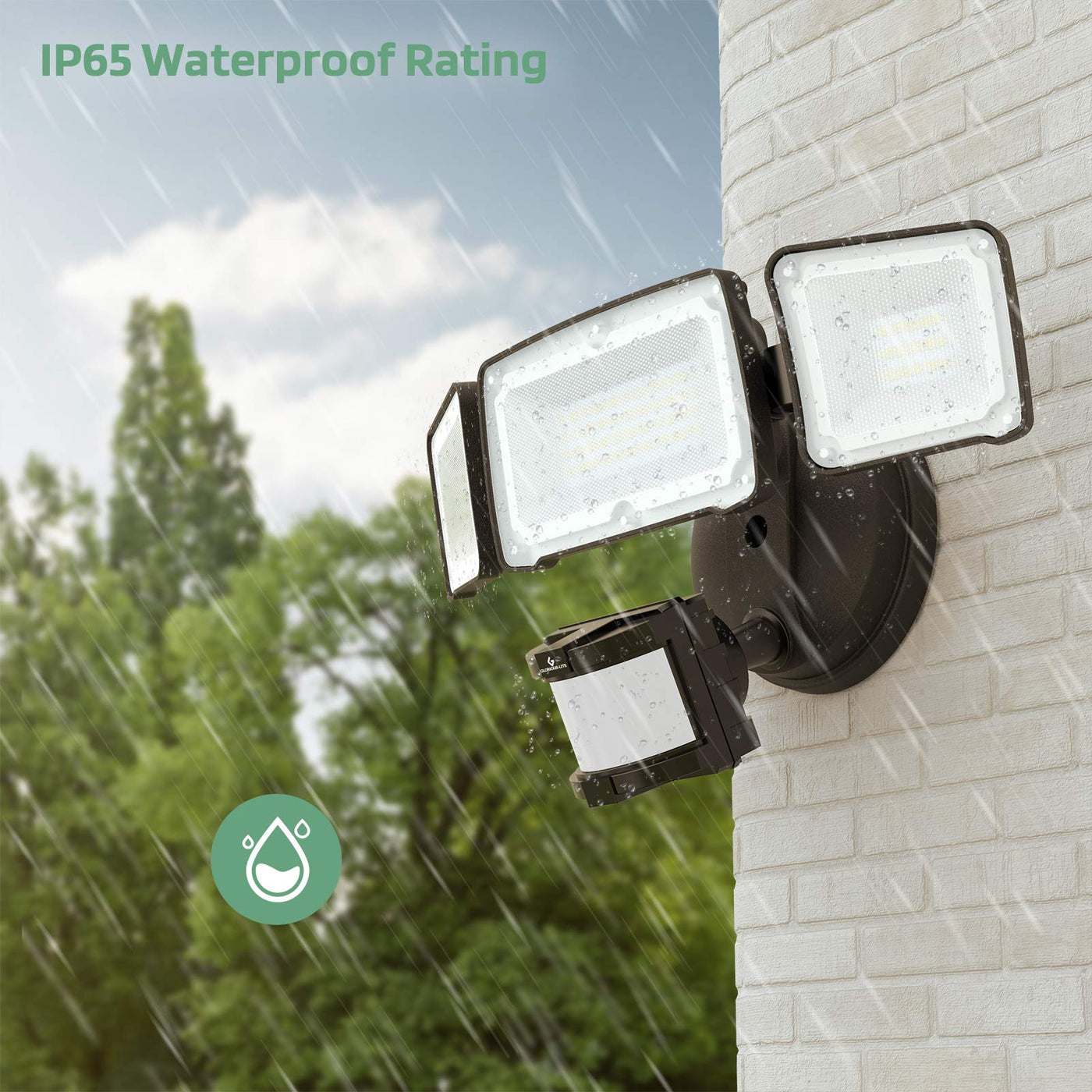 Q: Is this outdoor light fixture waterproof?A: Yes, the GLORIOUS-LITE LED Security Light has an IP65 waterproof rating, meaning it can withstand rain and snow, ensuring reliable performance in various weather conditions.