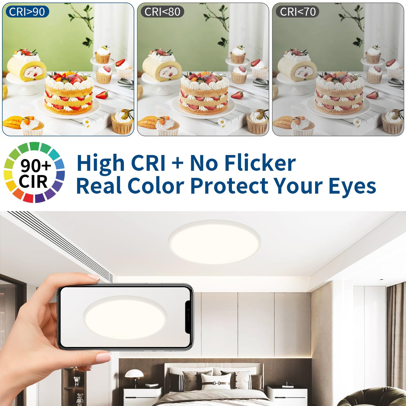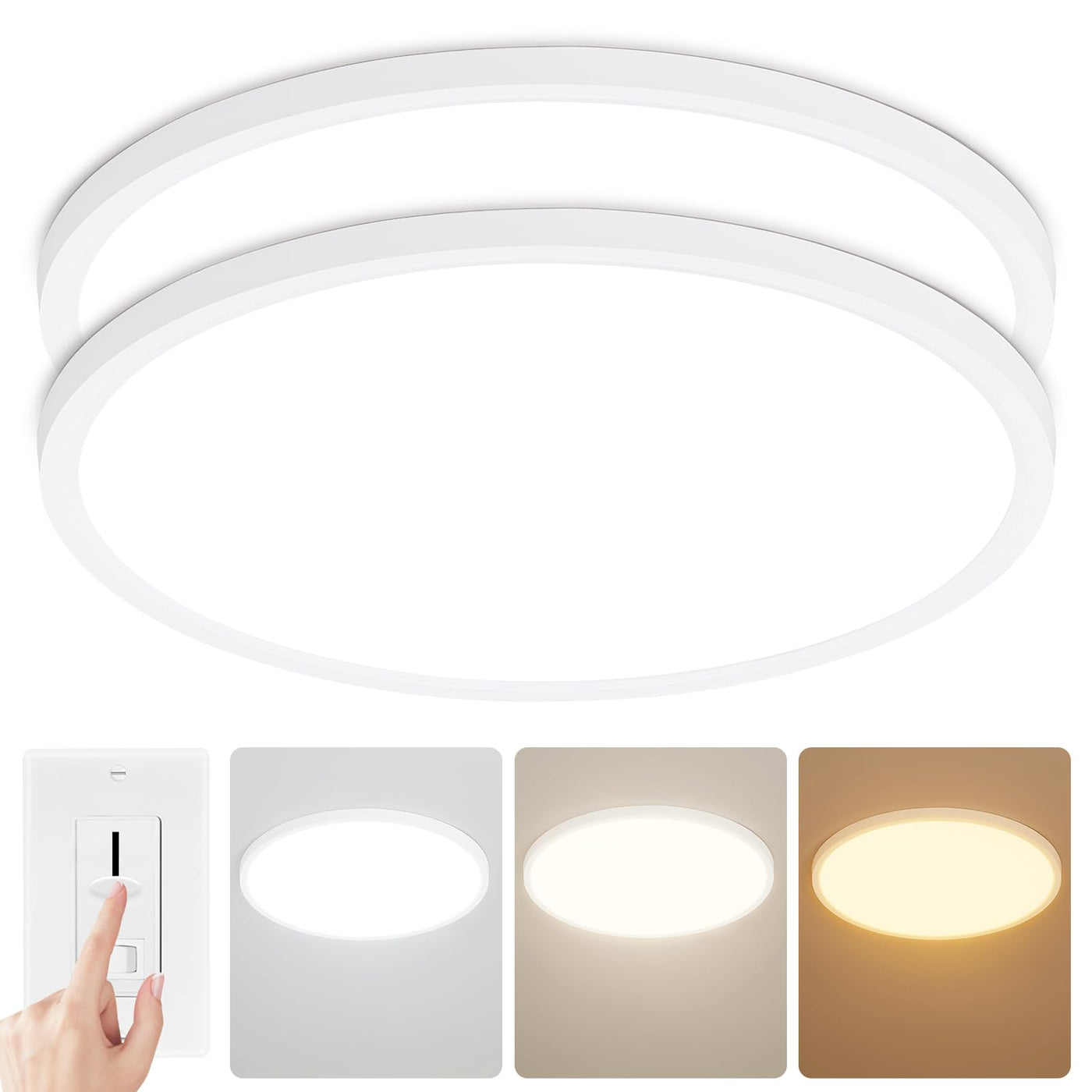 Glowall 2 Packs 16'' Led Ceiling Light Fixture, 0.67 Inch Ultra Thin Flush Mount, Dimmable & 3000K/4500K/6000K Selectable, 28W 3
