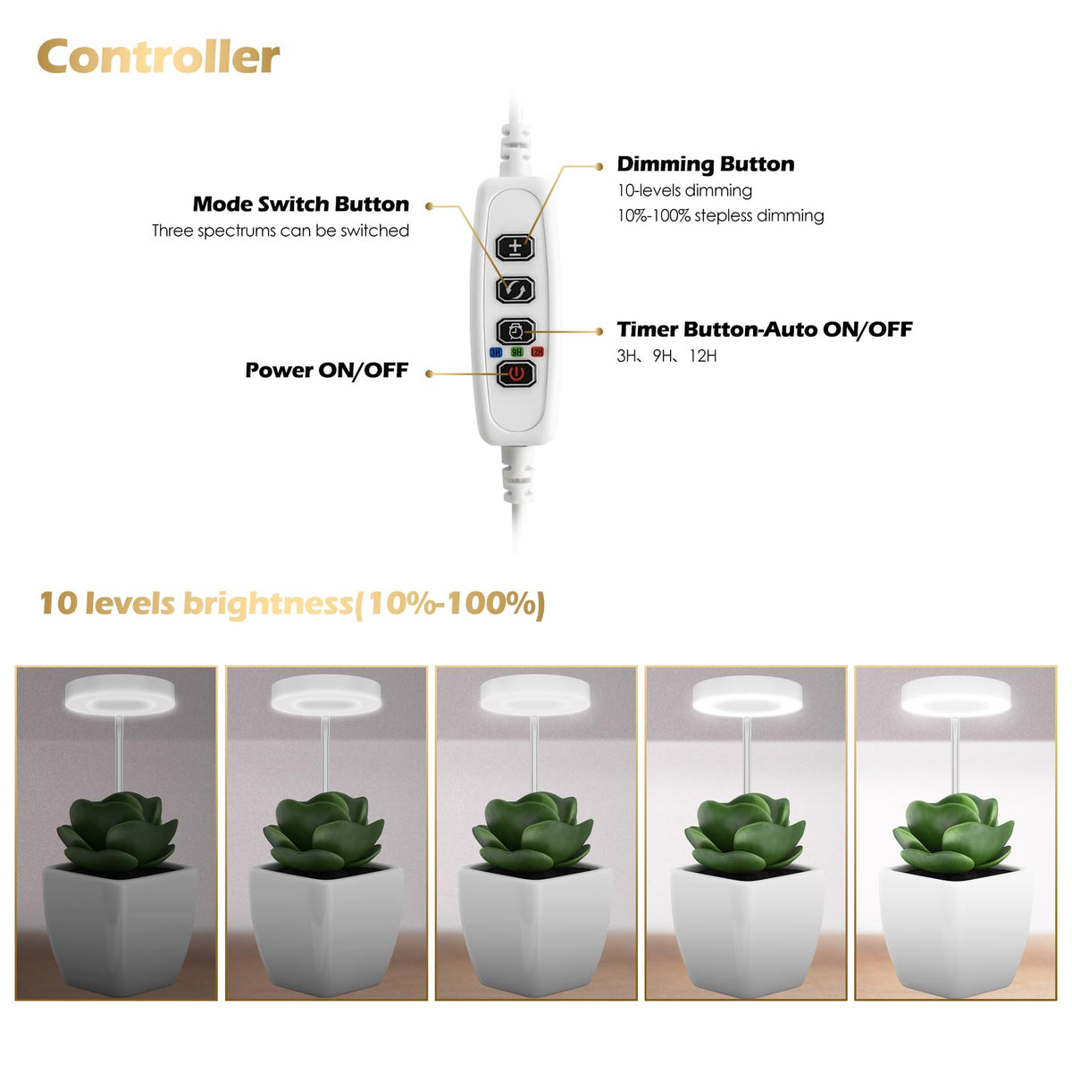 Glowrium Grow Lights For Indoor Plants, Full Spectrum Plant Lights With Clip, Height Adjustable&3 Spectrum Mode, 3/9/12H Automatic Timer, 10 Dimmable Brightness, Mini Halo Grow Lights For Small Plant