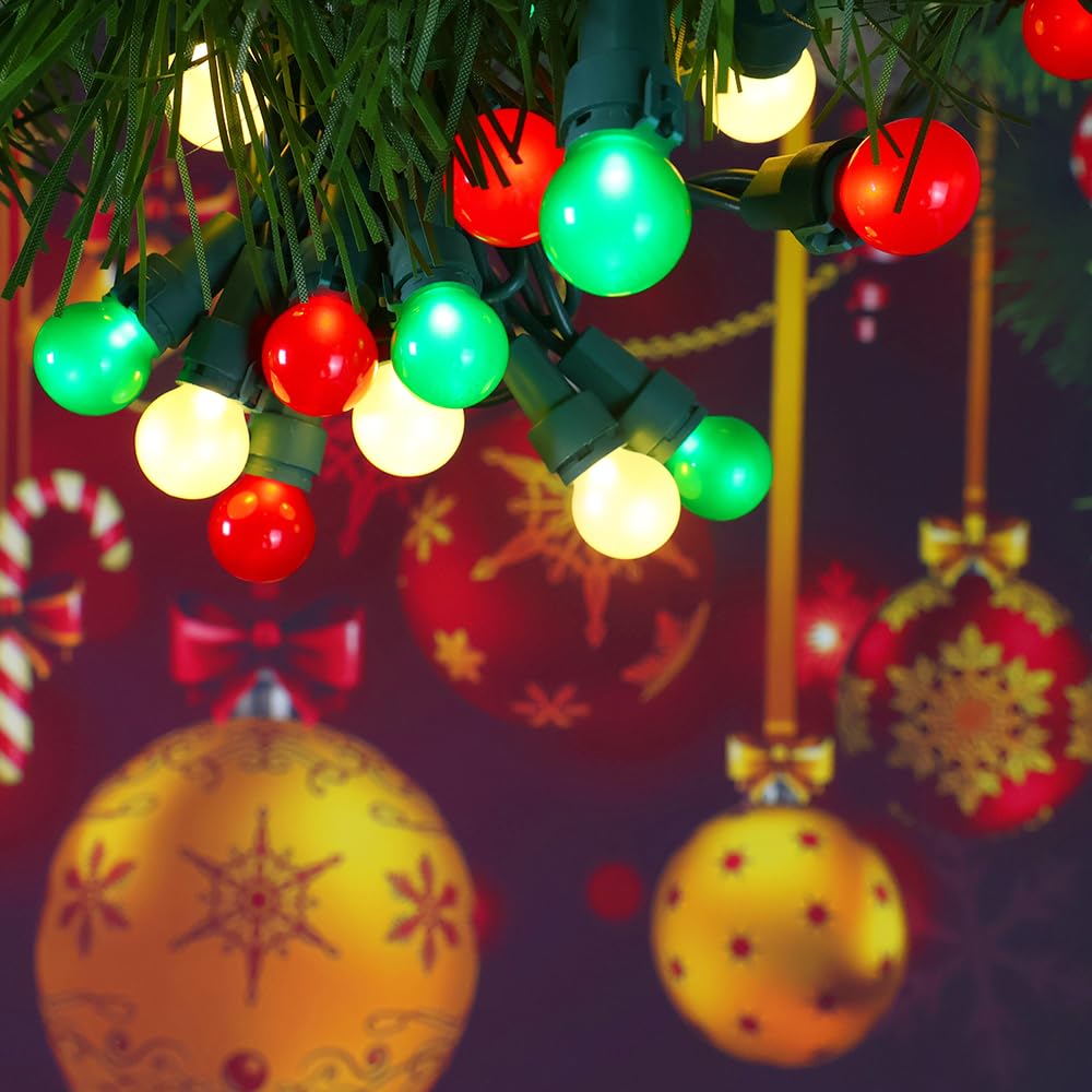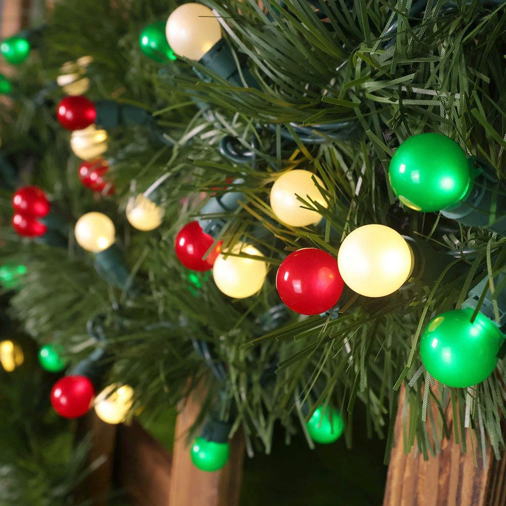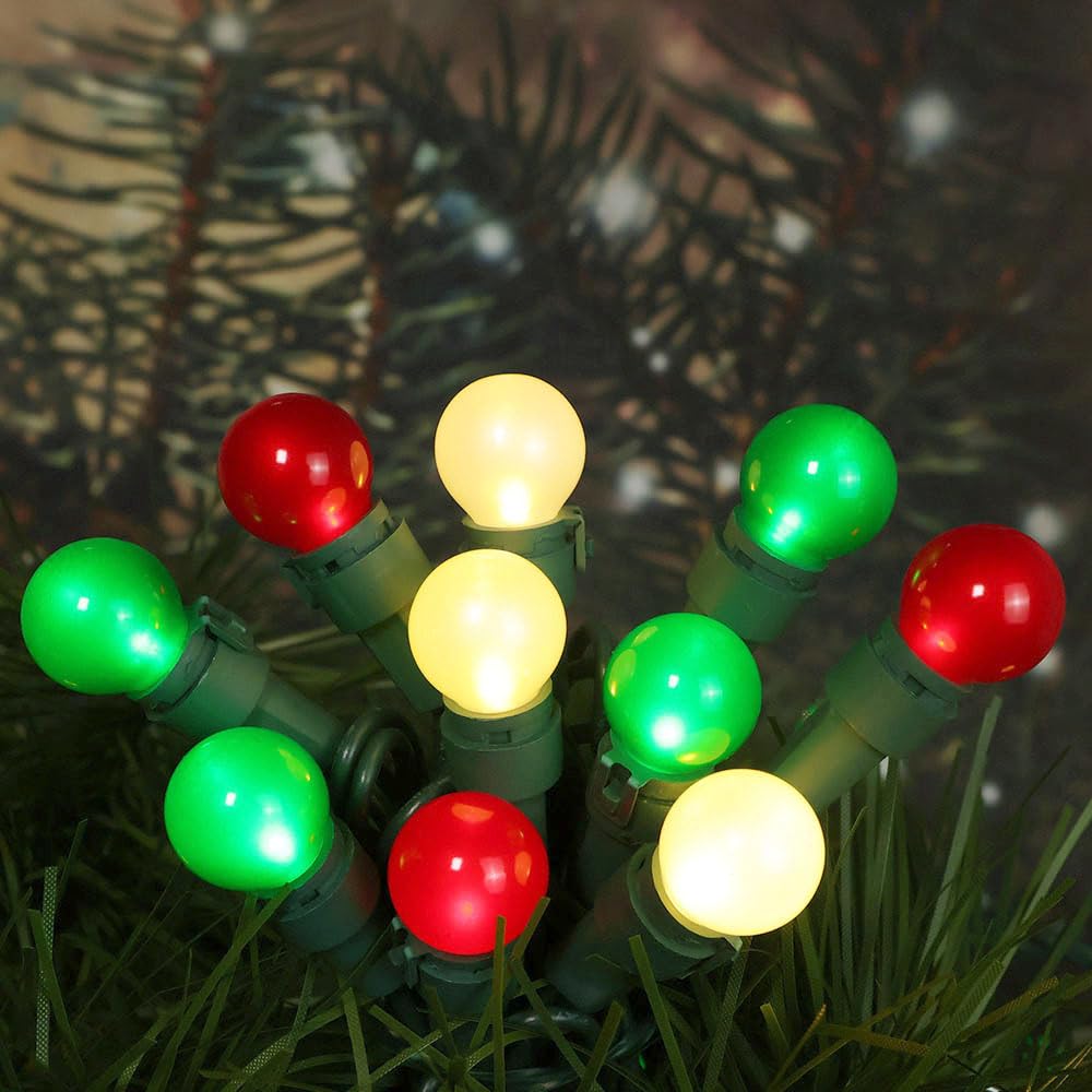 The G15 Pearlized Globe string lights are crafted from well-made glass, offering a sophisticated aesthetic that stands out. The bright and vivid colors of red, white, and green create a visually appealing display, whether the lights are turned on or off. With a generous length of 19 feet, these lights are versatile and can be used indoors or outdoors, making them perfect for a variety of occasions, from holiday celebrations to garden parties.
