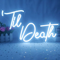 Enhance your living space and create memorable moments with the "Til Death" Neon Sign. Its unique design and customizable features make it the perfect addition to any decor style, inviting warmth and charm into your life.