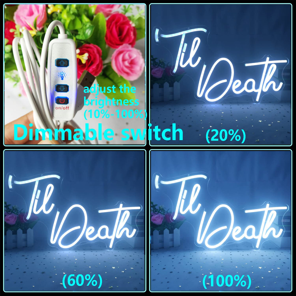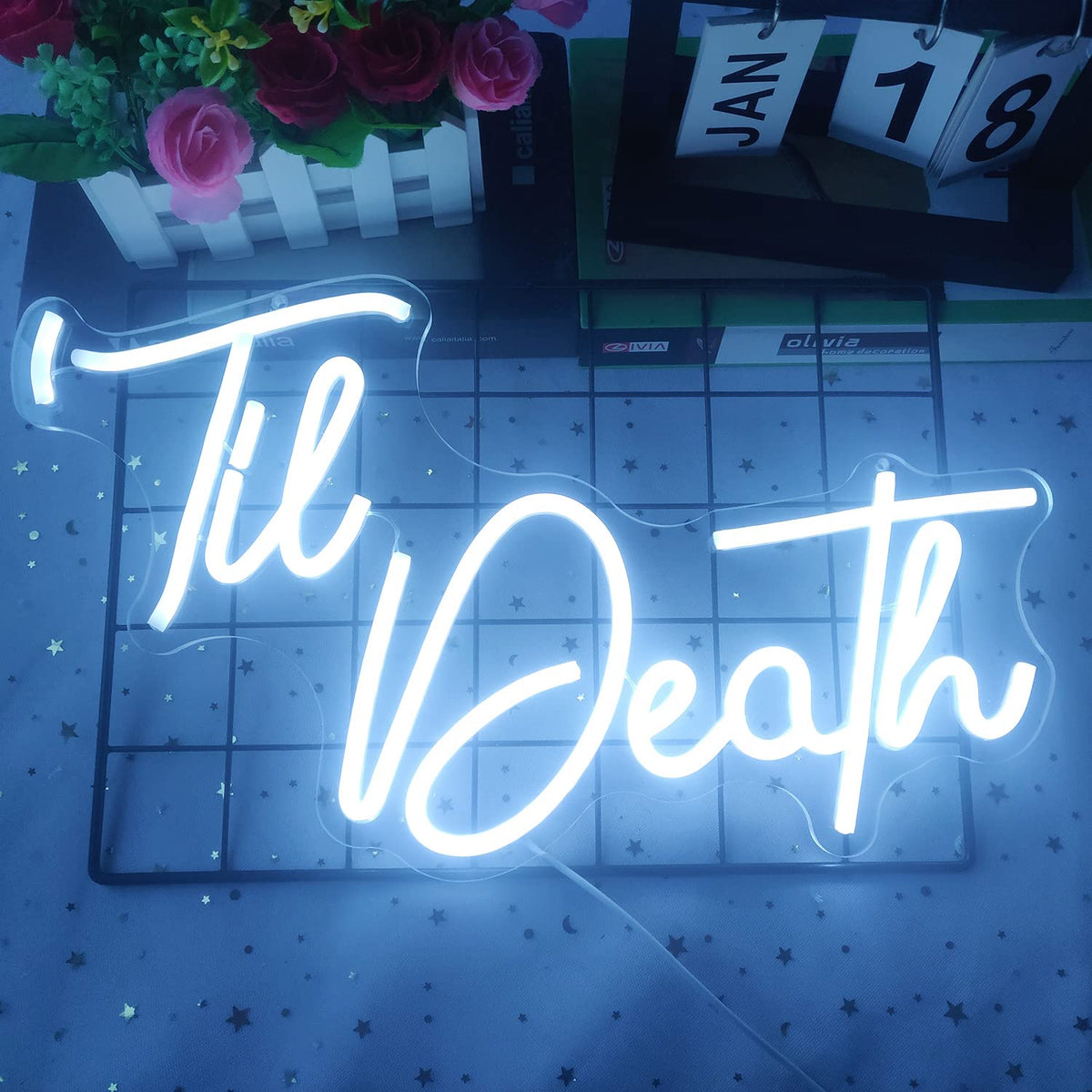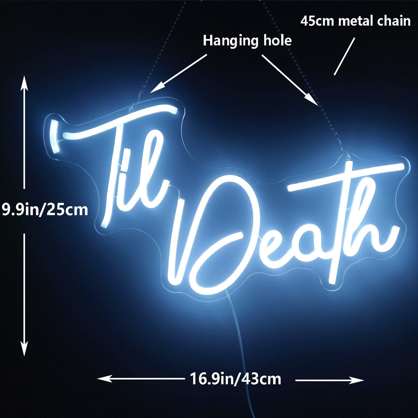 - **Perfect Gift Idea**: Packaged exquisitely, this neon light makes an excellent gift for birthdays, Valentine's Day, Christmas, or any special occasion. Ideal for lovers, friends, and family members, the "Til Death" neon sign is a thoughtful way to express love and creativity.