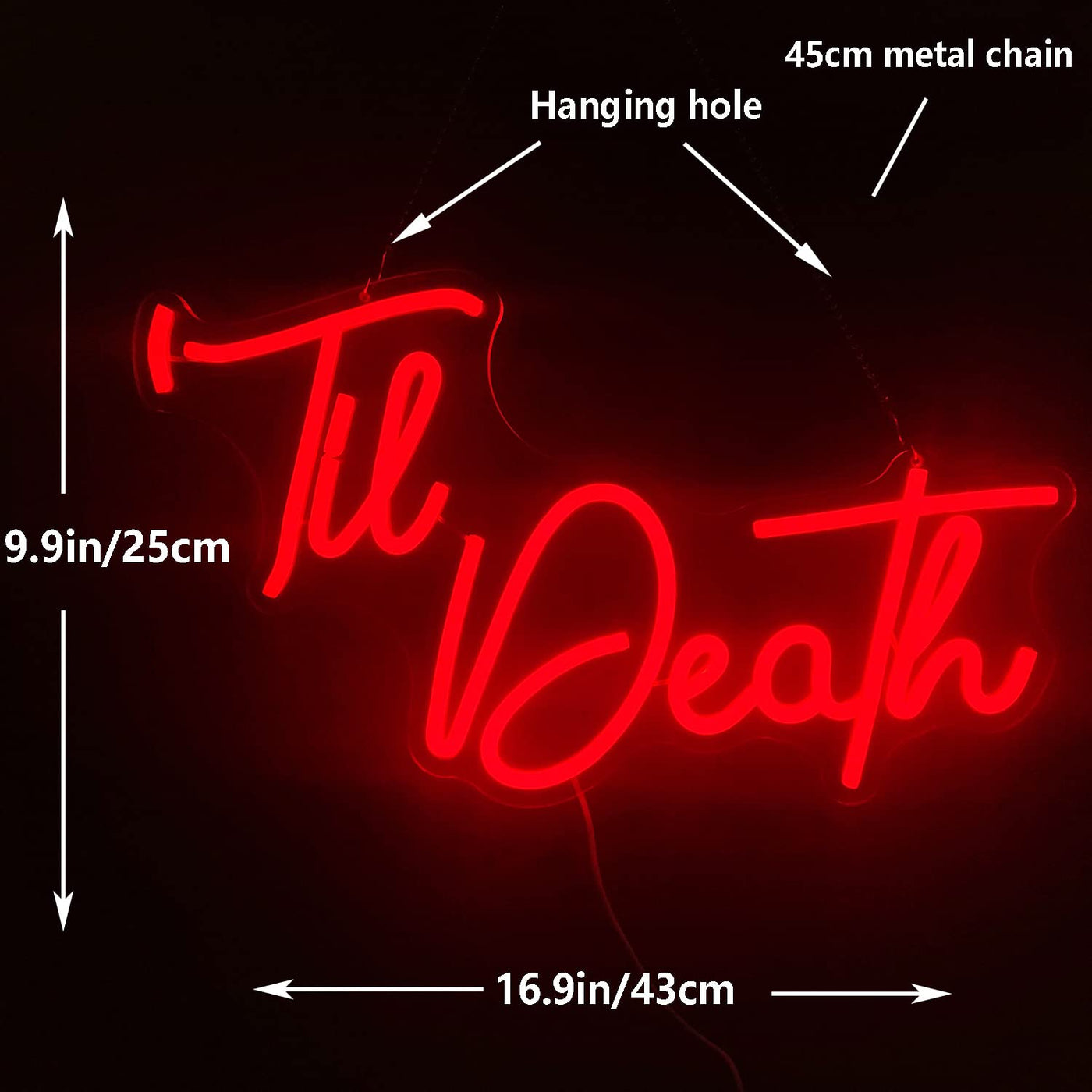 - **Customer Satisfaction Guaranteed**: Each "Til Death" neon sign is thoroughly checked before shipping to ensure flawless quality. For any concerns or assistance, our dedicated support team is ready to help within 24 hours.