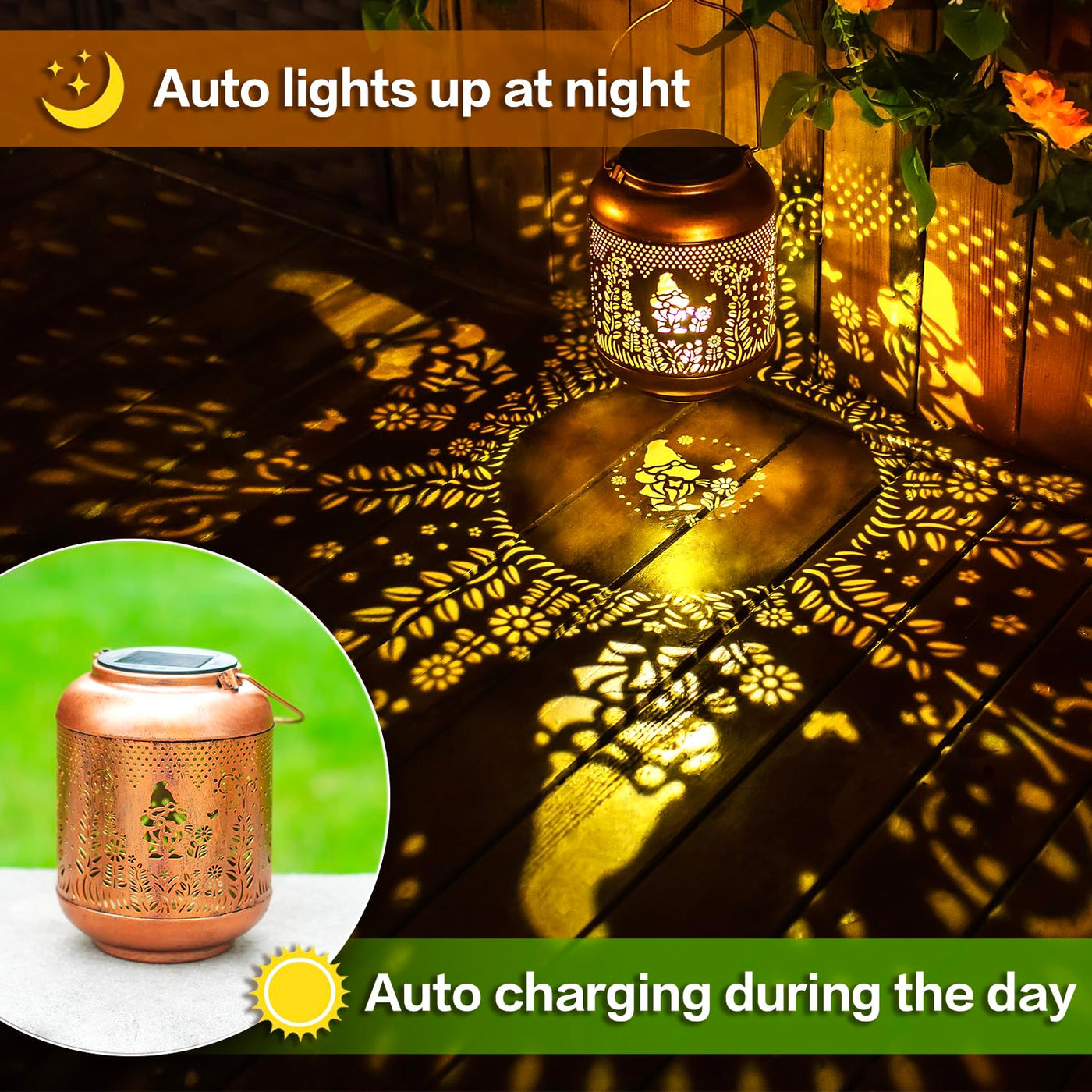 Gnomes Solar Lanterns Outdoor Waterproof Hanging Solar Lights Gnomes Gifts For Women Men Mom Metal Decorative Led Outdoor Lanter