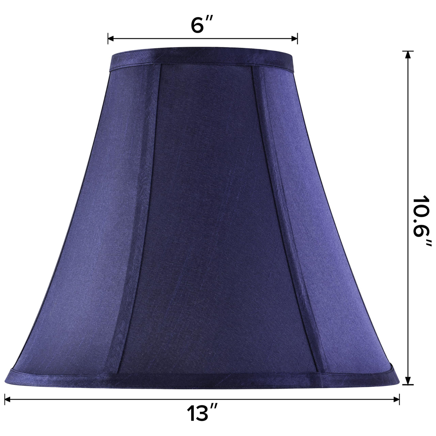 Q: What are the dimensions of the GO&SO Blue Bell Lamp Shade?A: The GO&SO Blue Bell Lamp Shade has a top diameter of 6 inches, a bottom diameter of 13 inches, and a height of 10.6 inches.