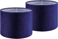 Go&So Dark Blue Velvet Drum Lamp Shade Set Of 2 Medium 13'' Top X 13'' Bottom X 10'' High(Spider) Modern Lamp Shades For Table L